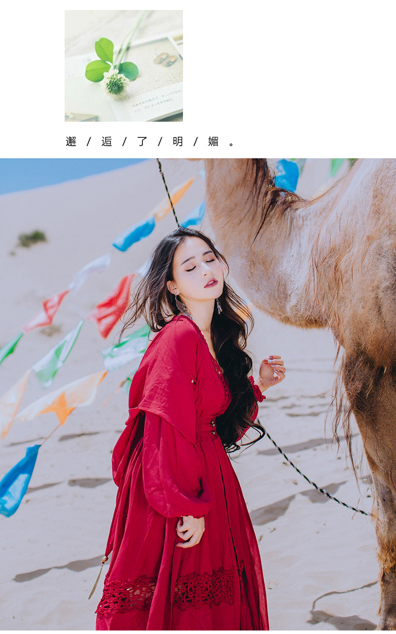 2019 이른 가을 새로운 민족 스타일 후드 초원 사막 차 카드 솔트 레이크 레드 스커트 해변 휴가 스커트 원피스스토어 가기