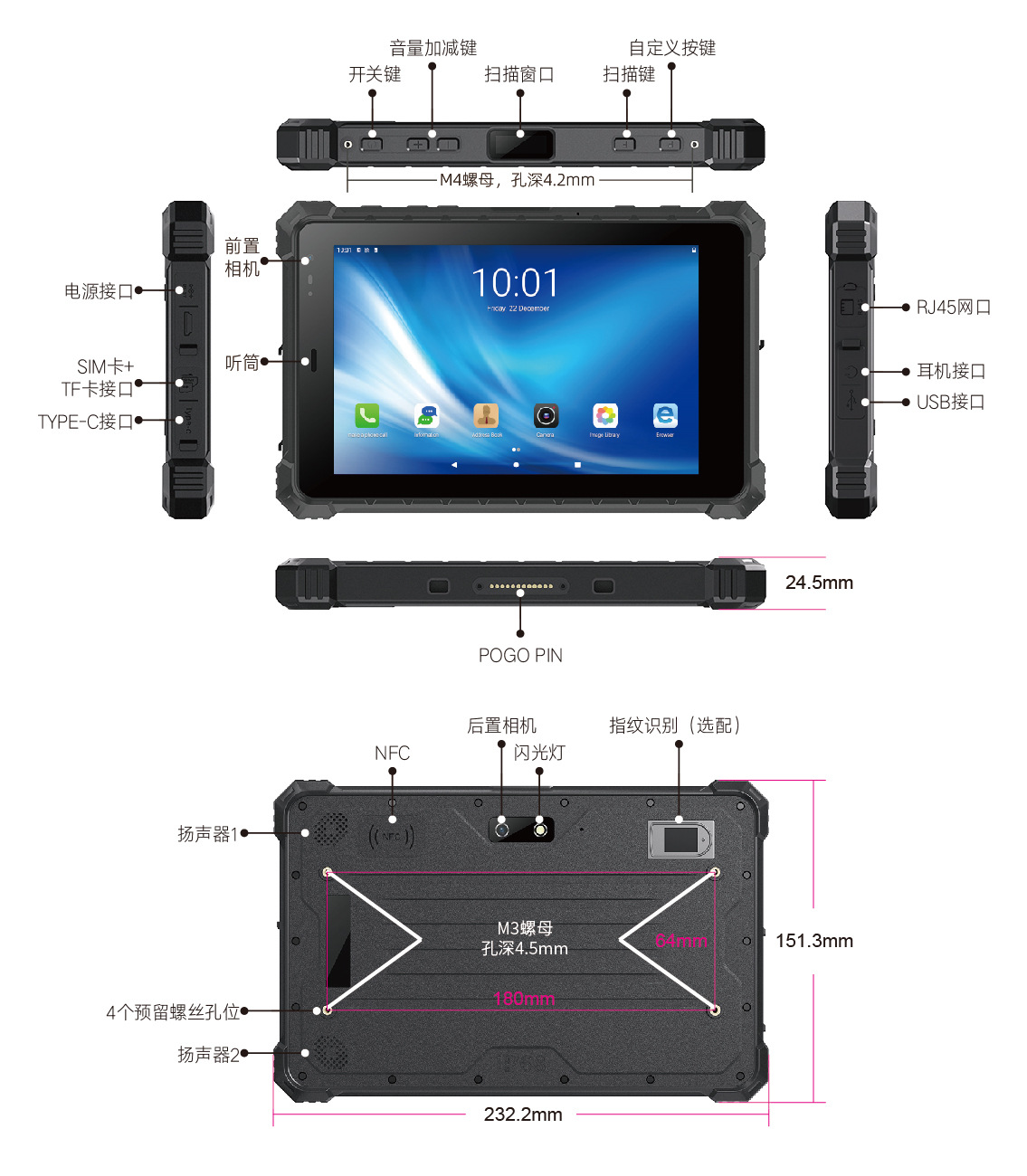산업용 A80ST 고보호 안드로이드 윈도우 퀸즐 스캔 코드 및 지문 인식 산업용 3중 보호 태블릿 컴퓨터
