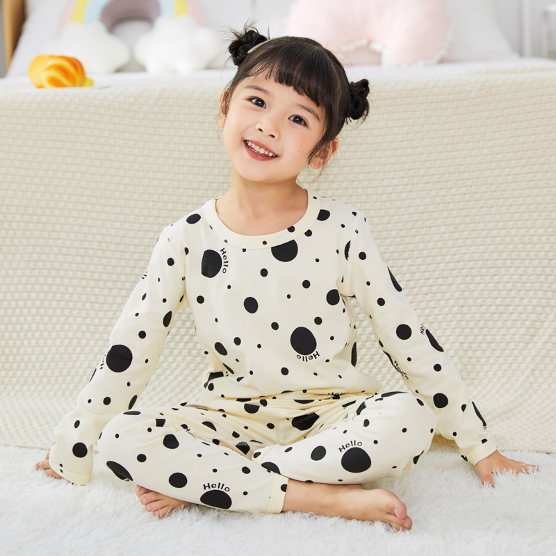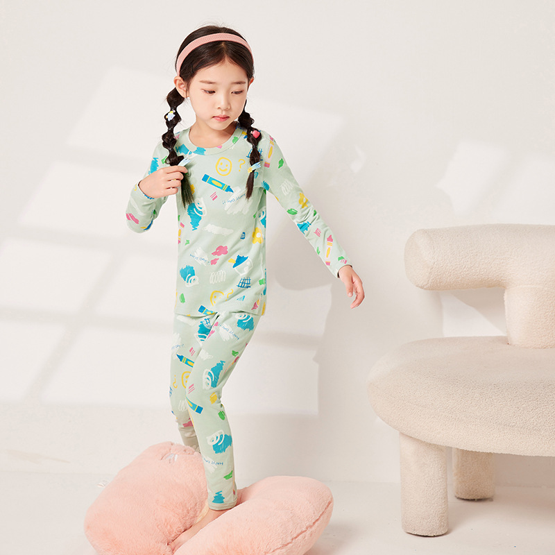INS 한국식 어린이 칫솔질 95 면 따뜻한 슬림 핏 뼈없는 속옷 긴 존스 세트 걸스 홈웨어