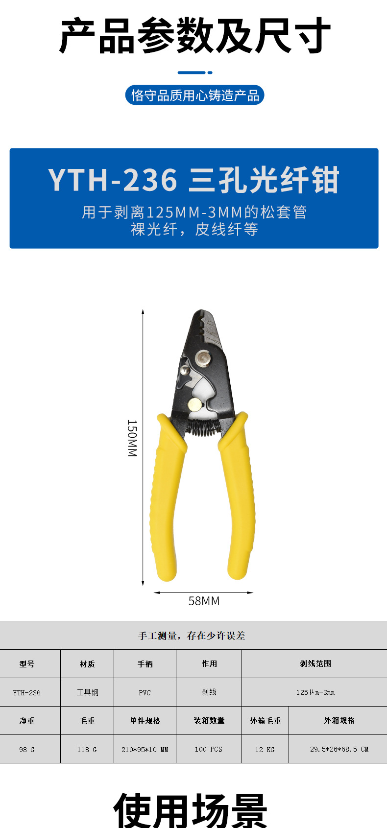 YTH-236 밀러 플라이어 3 포트 섬유 스트리핑 플라이어 다기능 FTTH 섬유 툴 코팅 층 스트리핑 플라이어스토어 가기