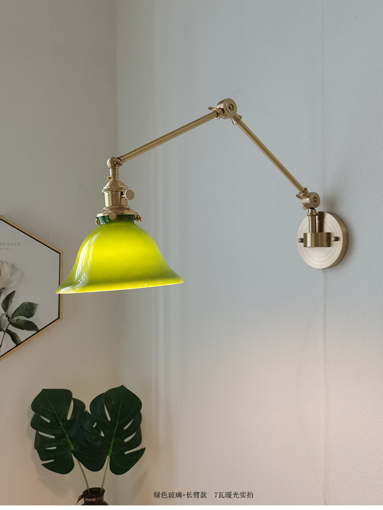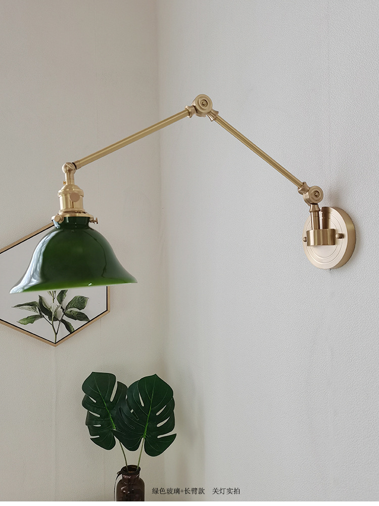 • 황동 + 녹색 유리 긴 팔 벽 램프 황동 + 녹색 유리 긴 팔 벽 램프