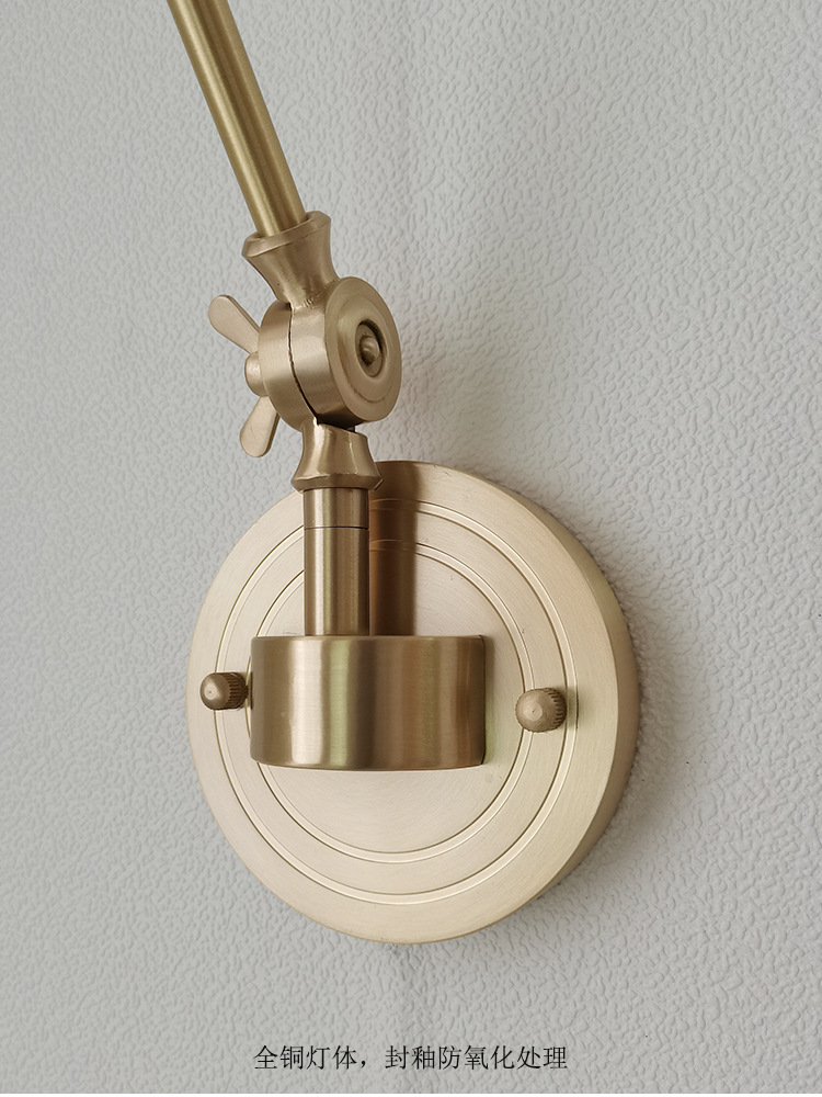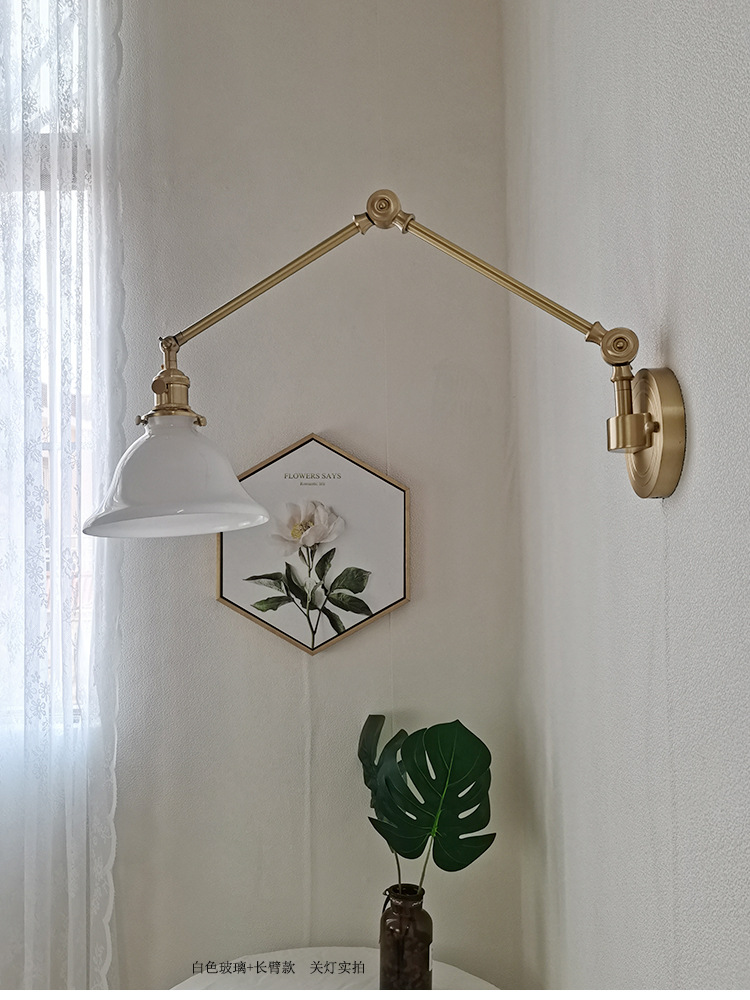 황동 유리 일본 스타일 복고풍 긴로드 로커 개폐식 접이식 침실 침대 옆 독서 연구 모든 구리 빛 고급 벽 램프