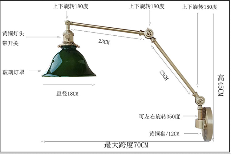 황동 유리 일본 스타일 복고풍 긴로드 로커 개폐식 접이식 침실 침대 옆 독서 연구 모든 구리 빛 고급 벽 램프스토어 가기