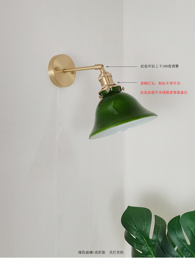 • 황동 + 녹색 유리 직선 벽 램프 황동 + 녹색 유리 직선 벽 램프
