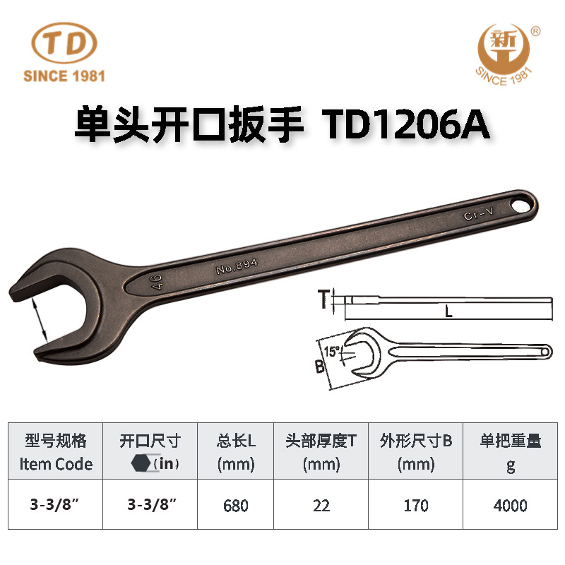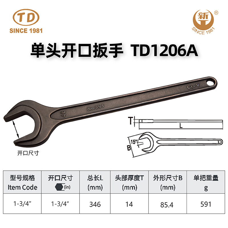 Tianta Xinong 노동 절약 렌치 포크 렌치 단일 헤드 오픈 엔드 렌치 TD1206A스토어 가기