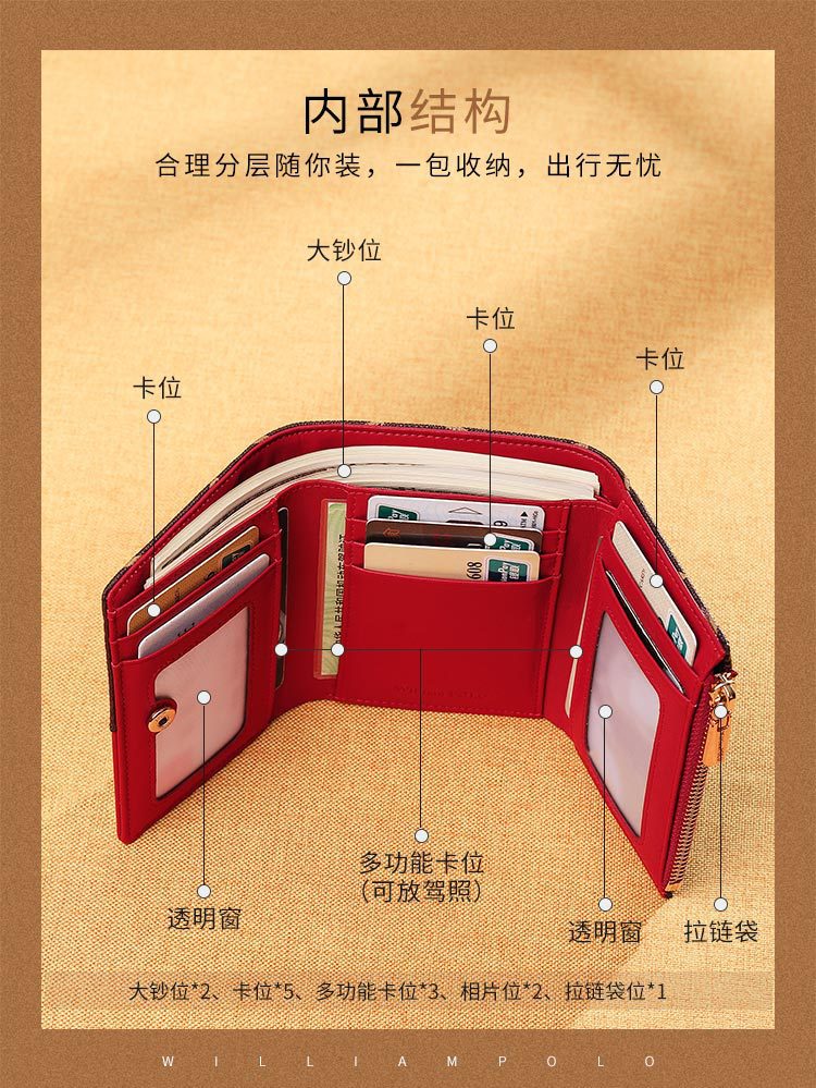 킹 폴 지갑 여성용 짧은 지갑 가죽 지갑 소가죽 지갑 30% 접는 지갑 패션 지갑 동전 지갑스토어 가기