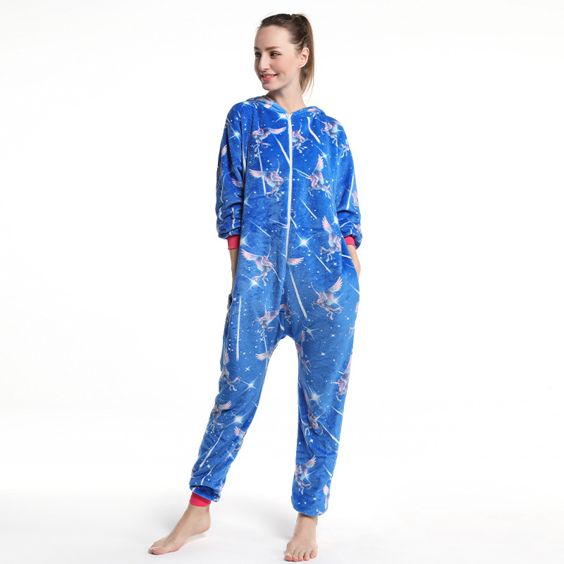 원피스 잠옷 가정복 모자와 여자의 새로운 만화 두꺼운 귀여운 만화 가정복 성인 플란넬 잠옷스토어 가기