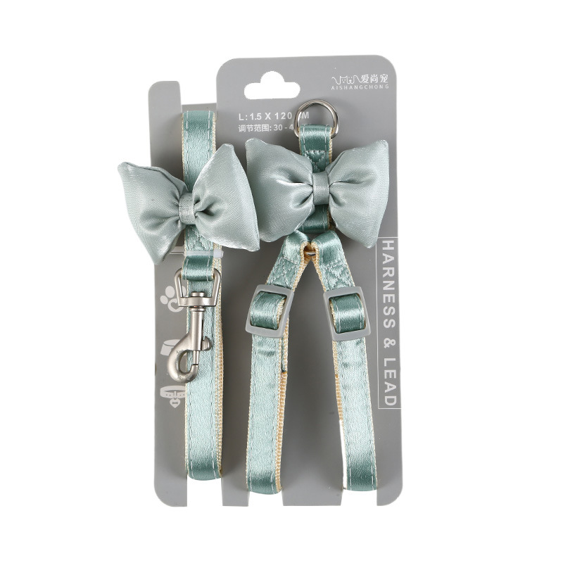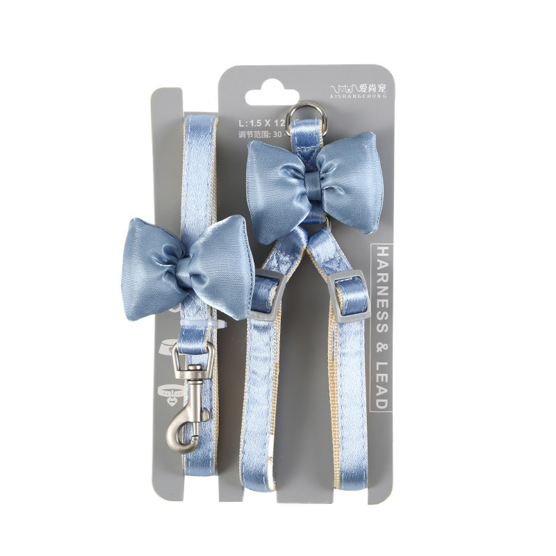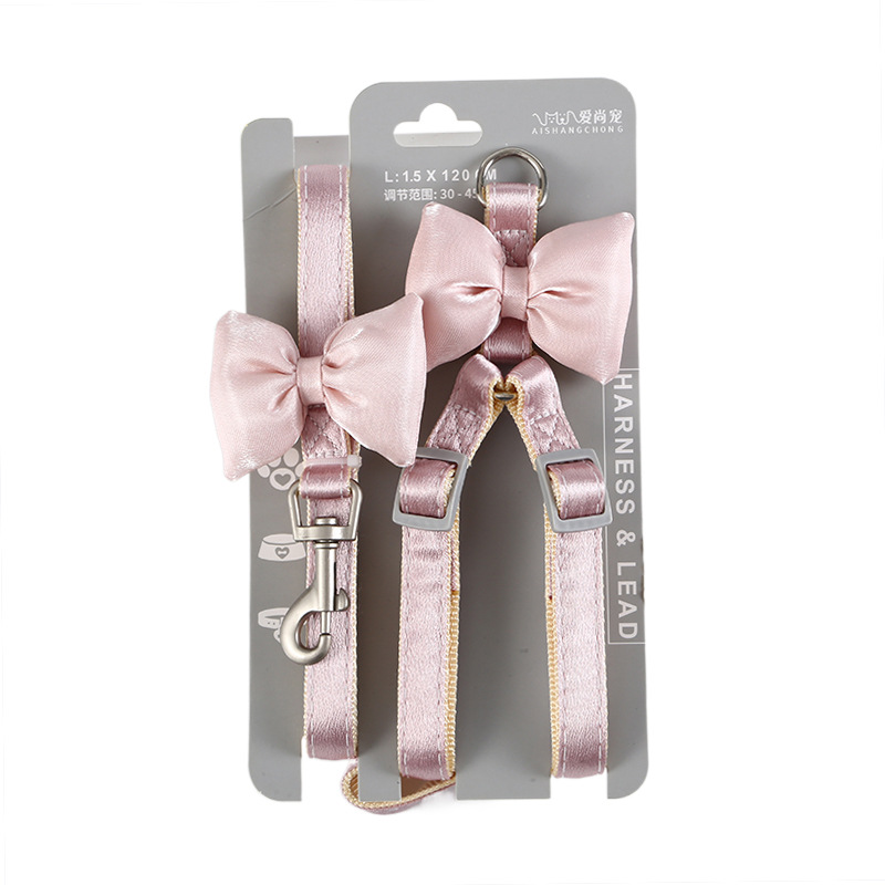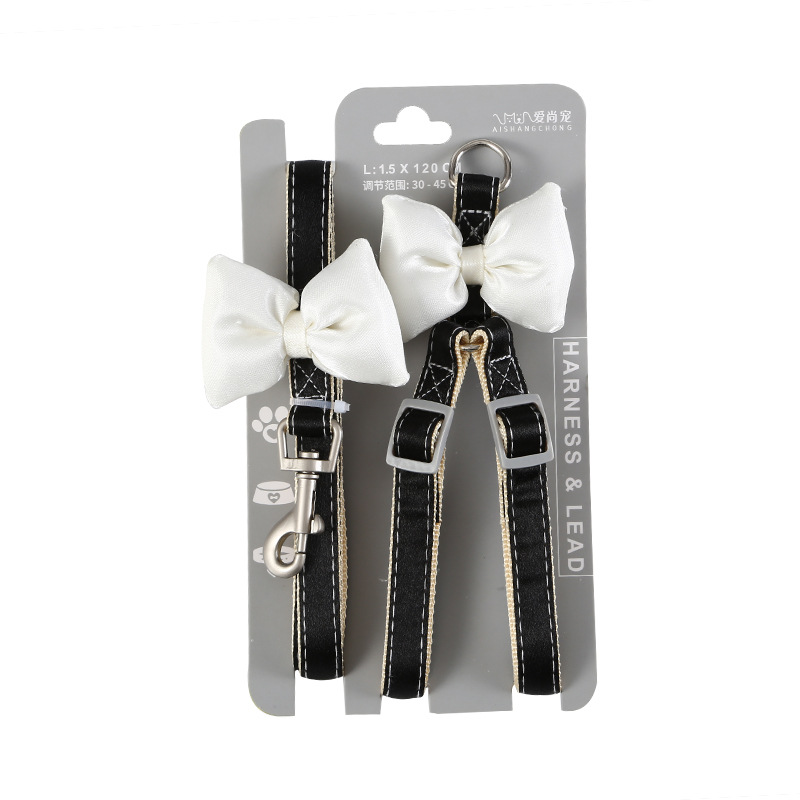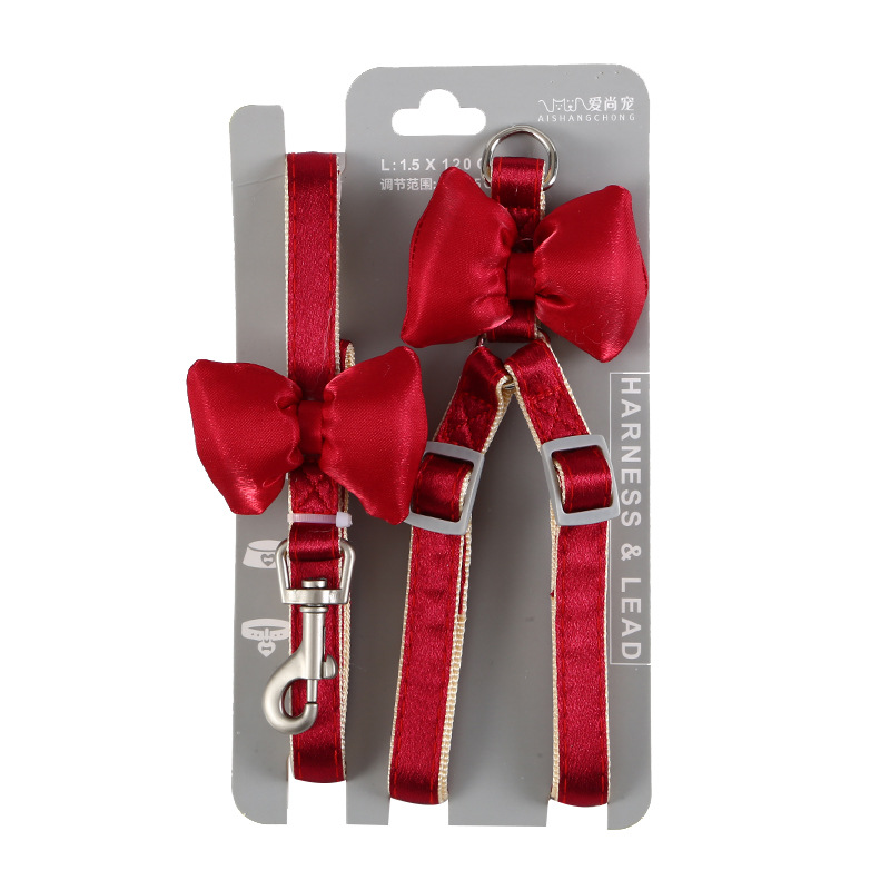 애완 동물 견인 로프 가슴 스트랩 개 견인 칼라 개 로프 개 체인 밝은 실크 나비 넥타이 가슴 스트랩 도매