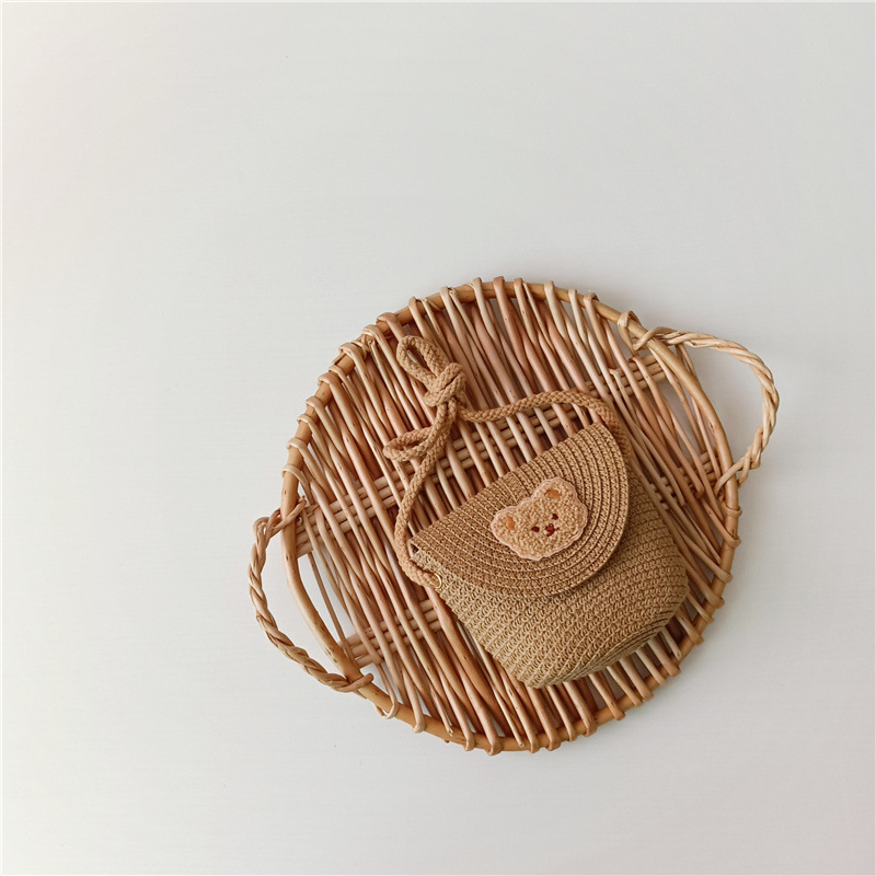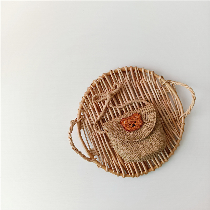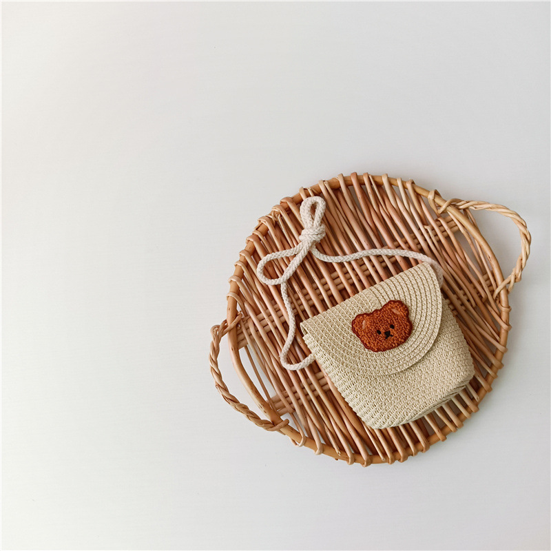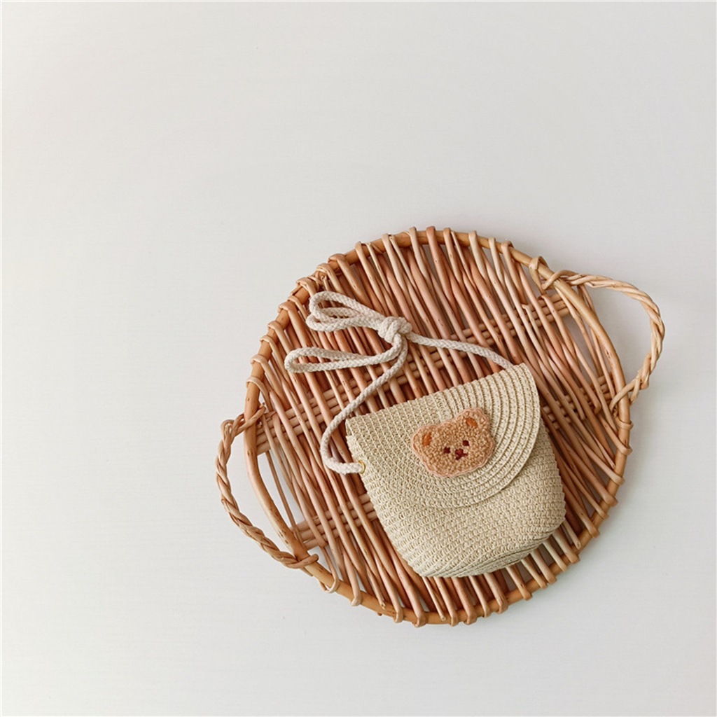 한국식 밀짚 짠 스타일리스트 어린이 미니 크로스 바디 백 아기의 여행 오목한 모양 귀여운 곰 플립 커버 동전 지갑 유행스토어 가기
