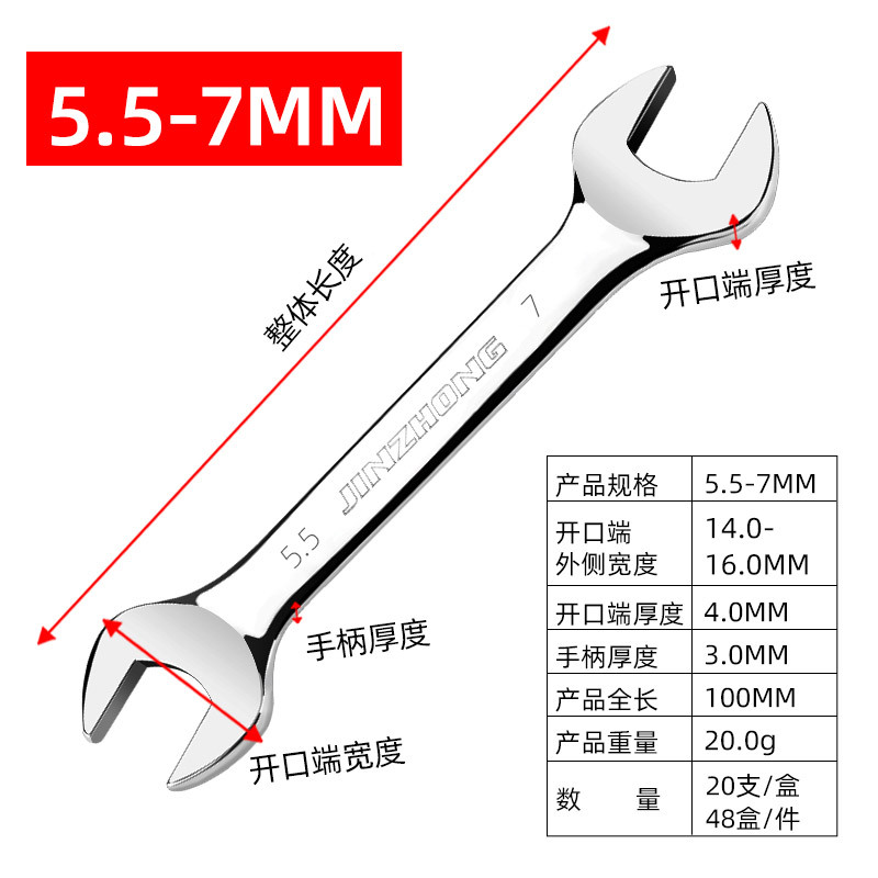• 5.7*7 더블 오픈 엔드 렌치 (20 PC/상자, 이동식 상자)