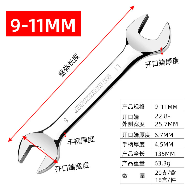 • 9*11 더블 오픈 엔드 렌치 (20/상자, 이동식 상자)
