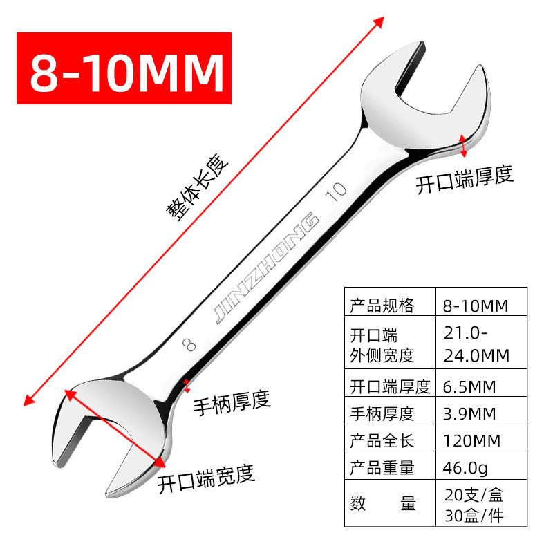 • 8*10 더블 오픈 엔드 렌치 (20/상자, 이동식 상자)