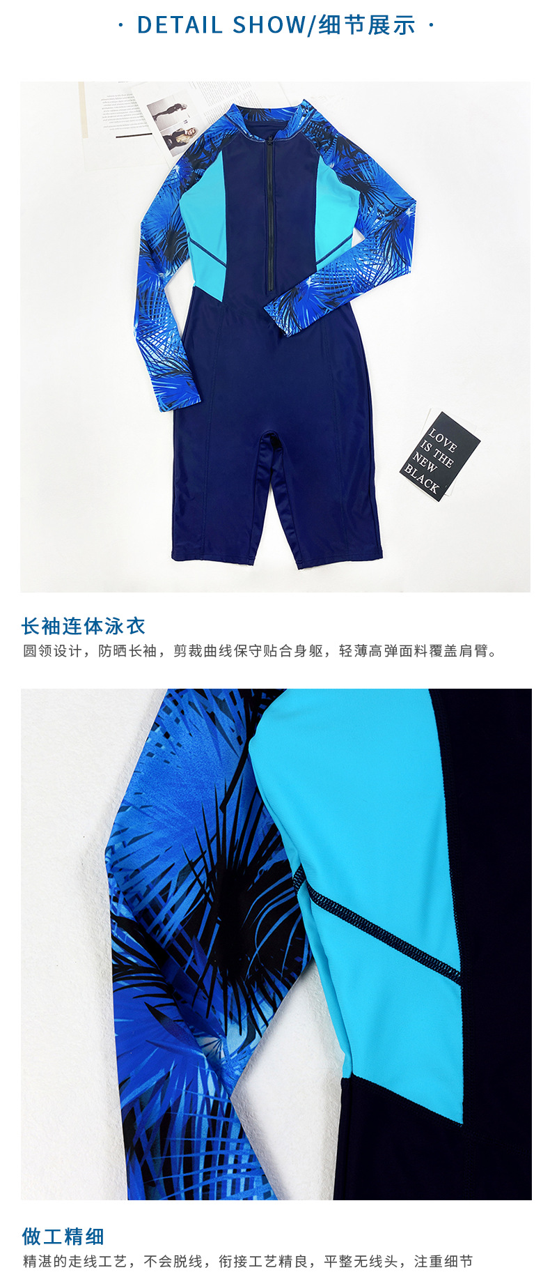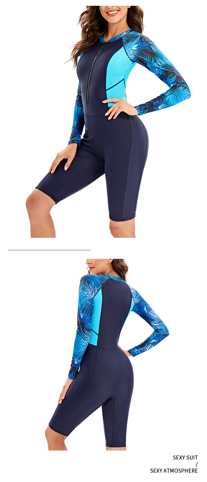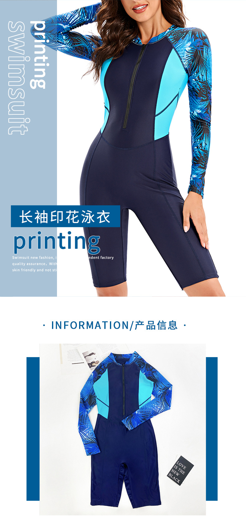 크로스 국경 유럽과 미국 원피스 긴 소매 프린트 스티치 컬러 스타일 서핑 자외선 차단제 여성용 수영복 다이빙 세트 섹시한 수영복스토어 가기