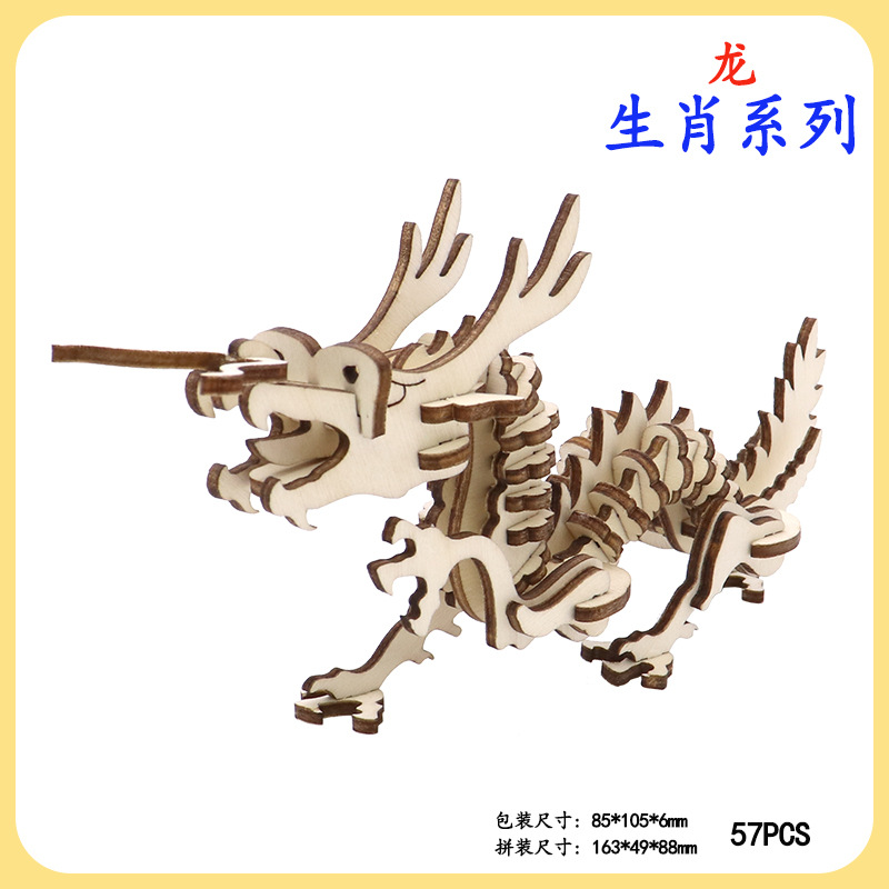 어린이 공룡 퍼즐 나무 3D 입체 수제 조립 모델 유치원 선물 교육용 장난감 도매스토어 가기