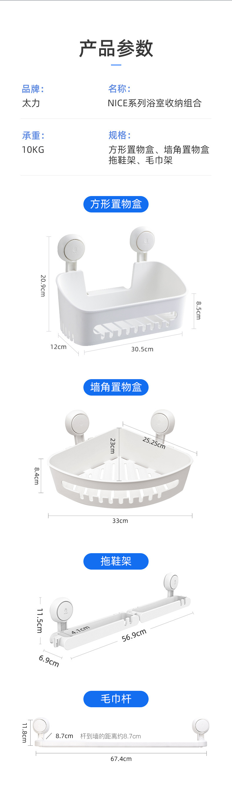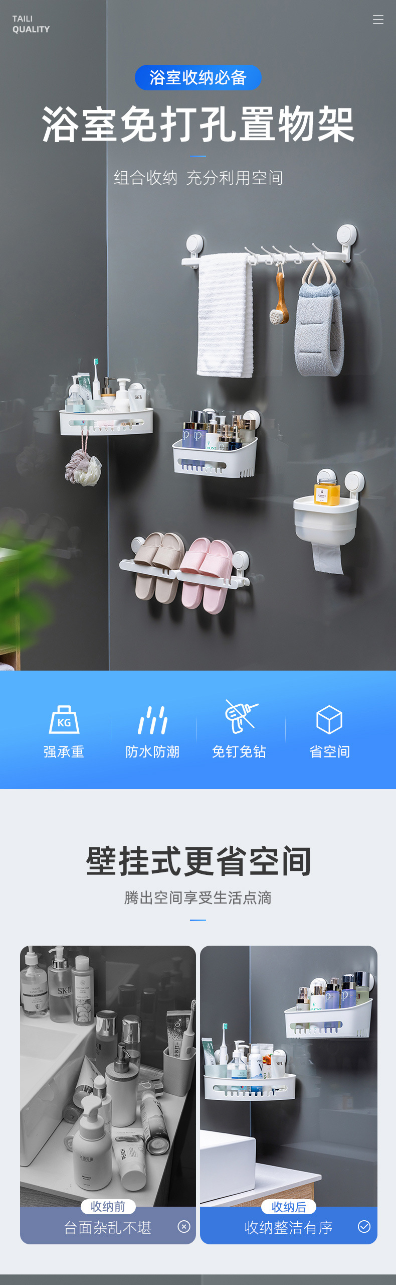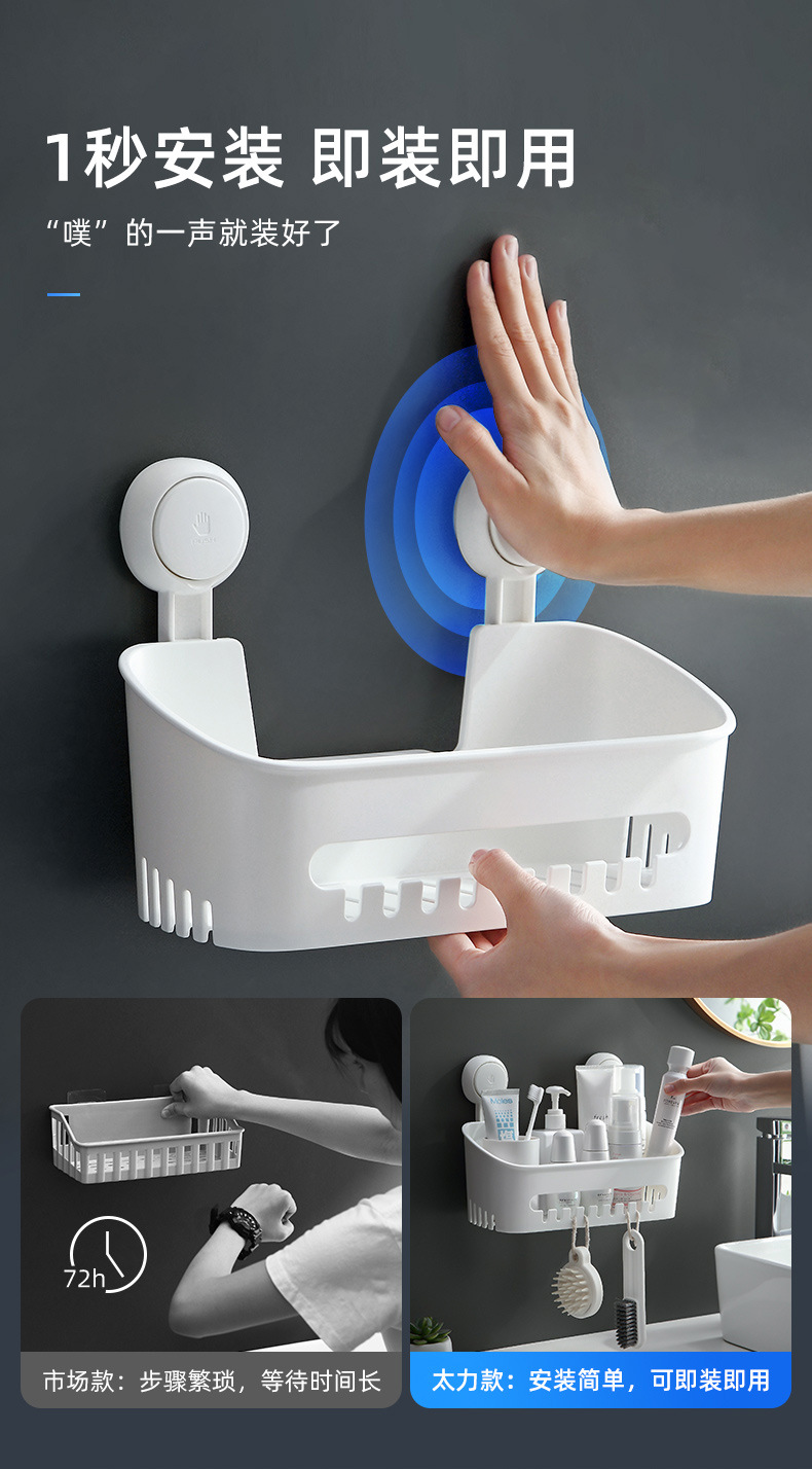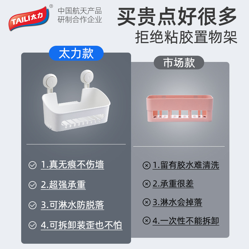 Taili 욕실 화장실 사각형 수납 선반 세면대 벽걸이 화장실 수납 선반 흡입 컵 배송