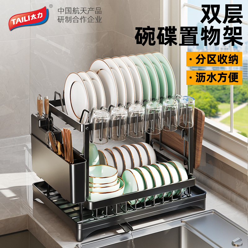 • 블랙 더블 레이어 럭셔리 접시 랙