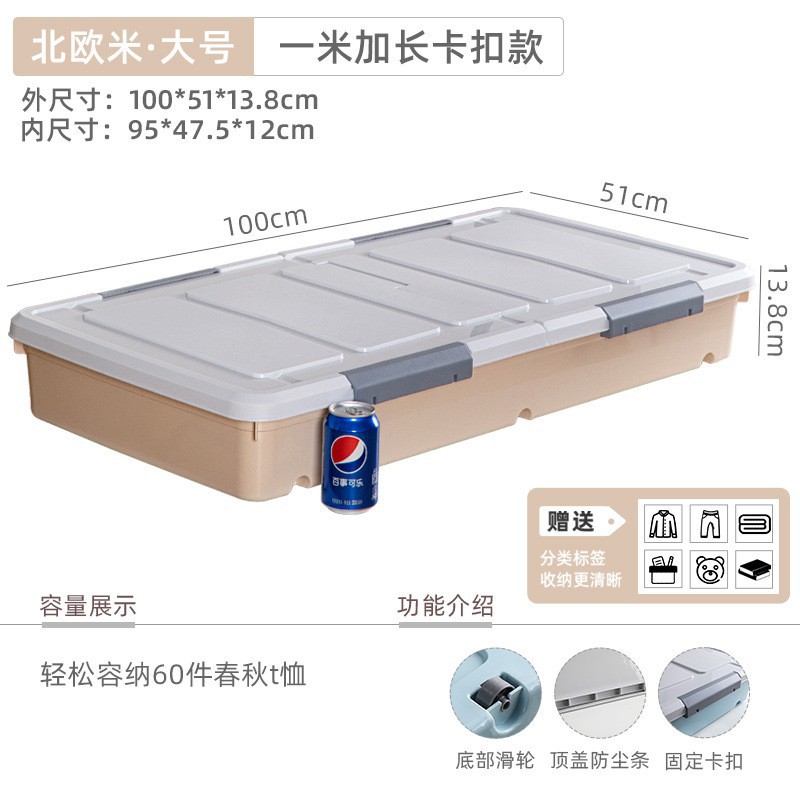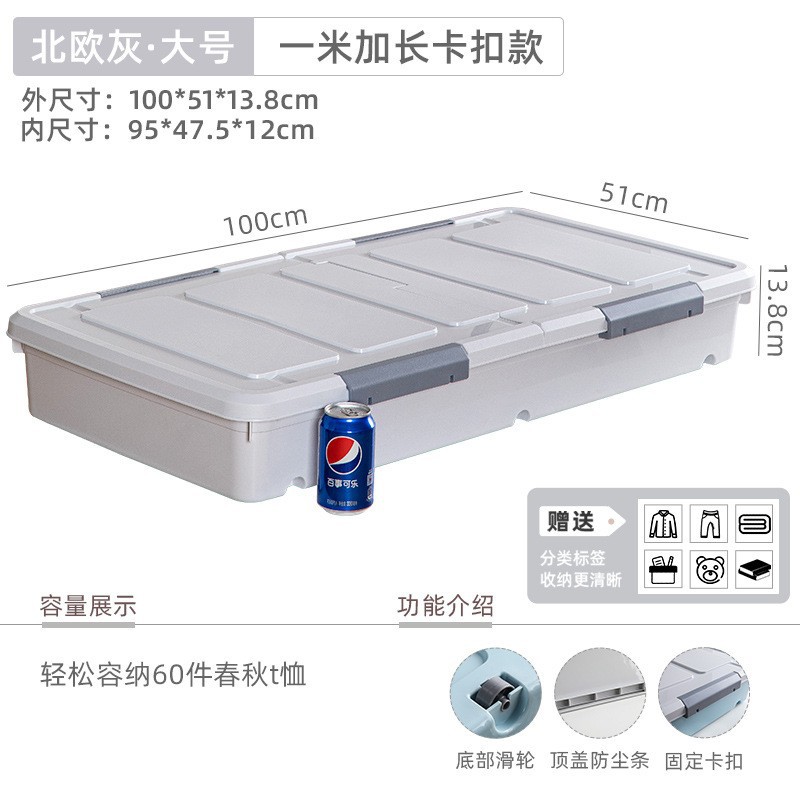 황금 고양이 초대형 평면 보관 상자 플라스틱 옷 커버 도르래 침대 바닥 마감 보관 상자 맞춤형