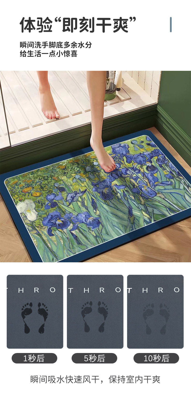 규조토 진흙 현관화, 유화 바닥매트, 현관매트, 욕실 흡수성 발매트, 화장실 카펫, 미끄럼 방지, 신중국풍