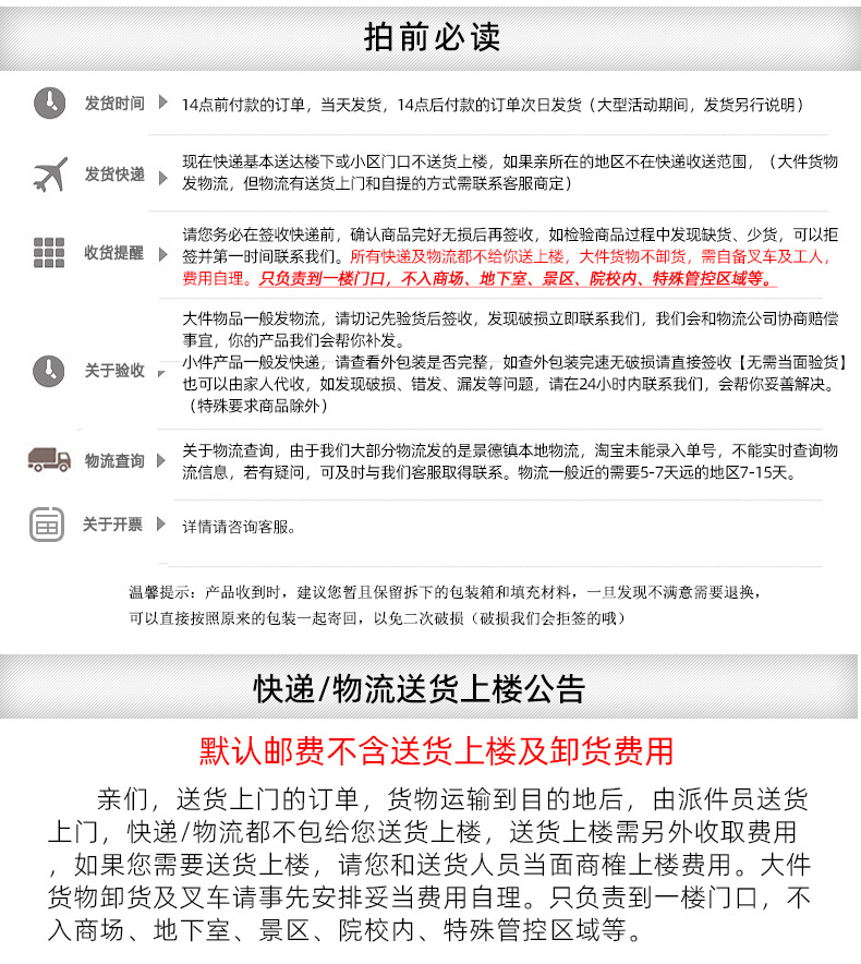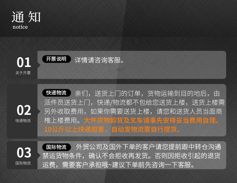 因部分产品下单数量大,为避免出错,买家购买时,敬请在留言处备注:型号,颜色,大小;如客服在线,请先与客服确认产品是否有货。