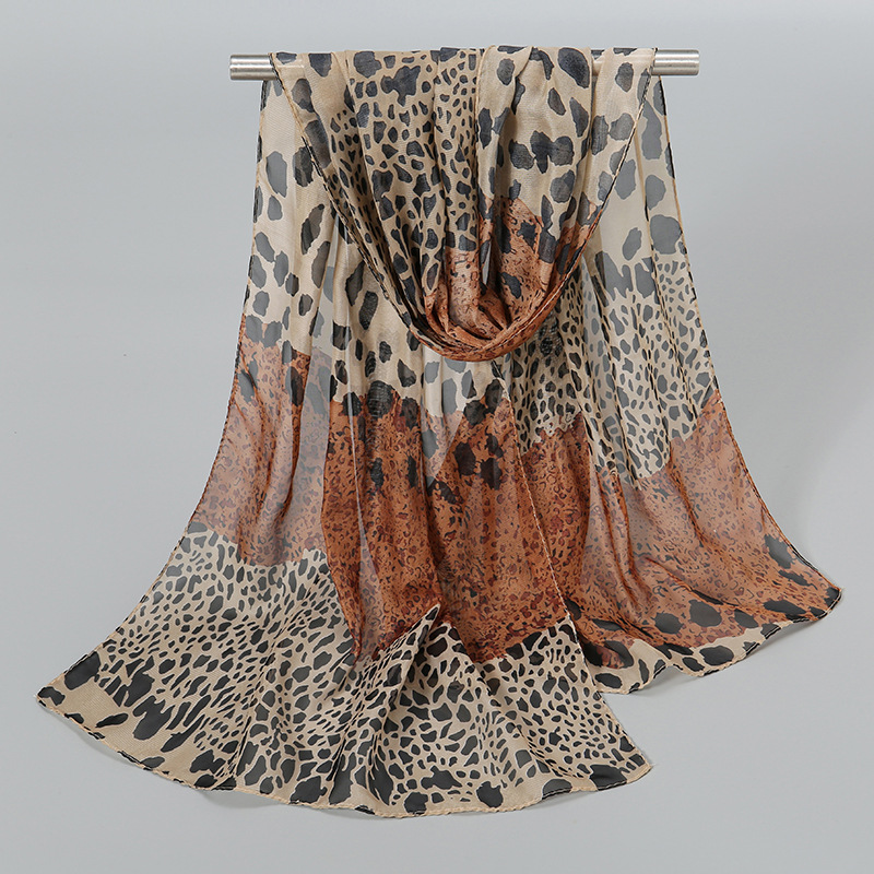 유럽과 미국 새로운 표범 스티칭 쉬폰 스카프 여성 봄과 여름 선 스크린 스카프 얇은 거즈 도매 XQ376