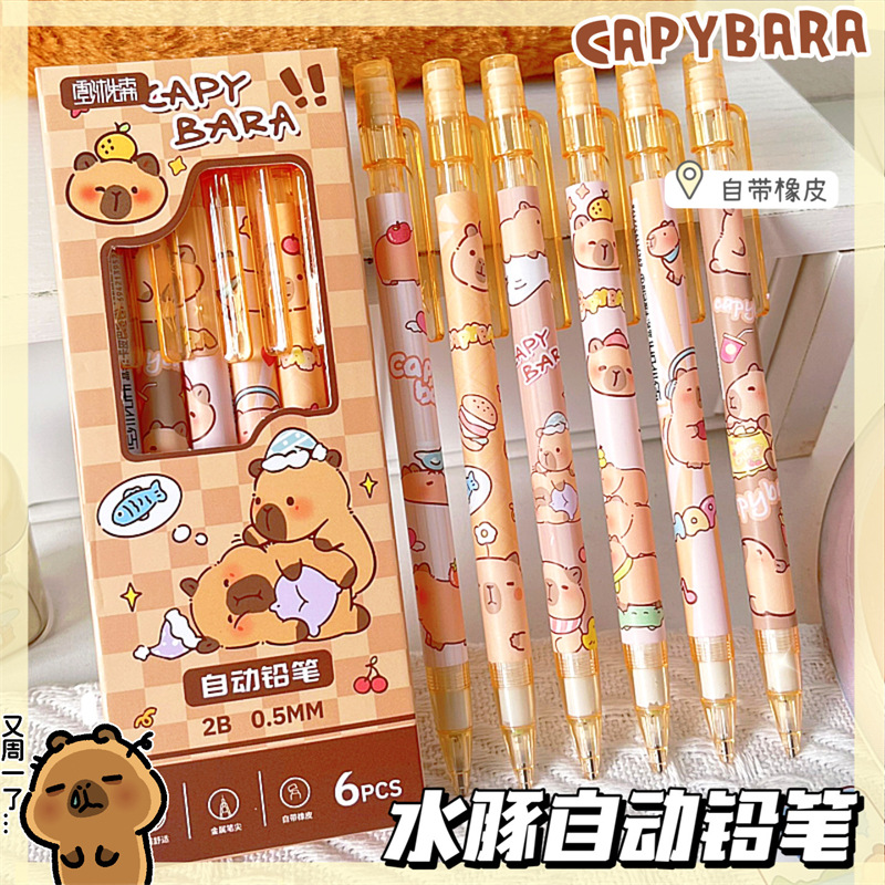 자동 연필 박스형 복숭아 공룡 만화 초등 학생을위한 하이 컬러 가치 활동 연필 귀여운 크리에이티브 프레스 펜