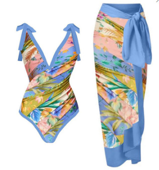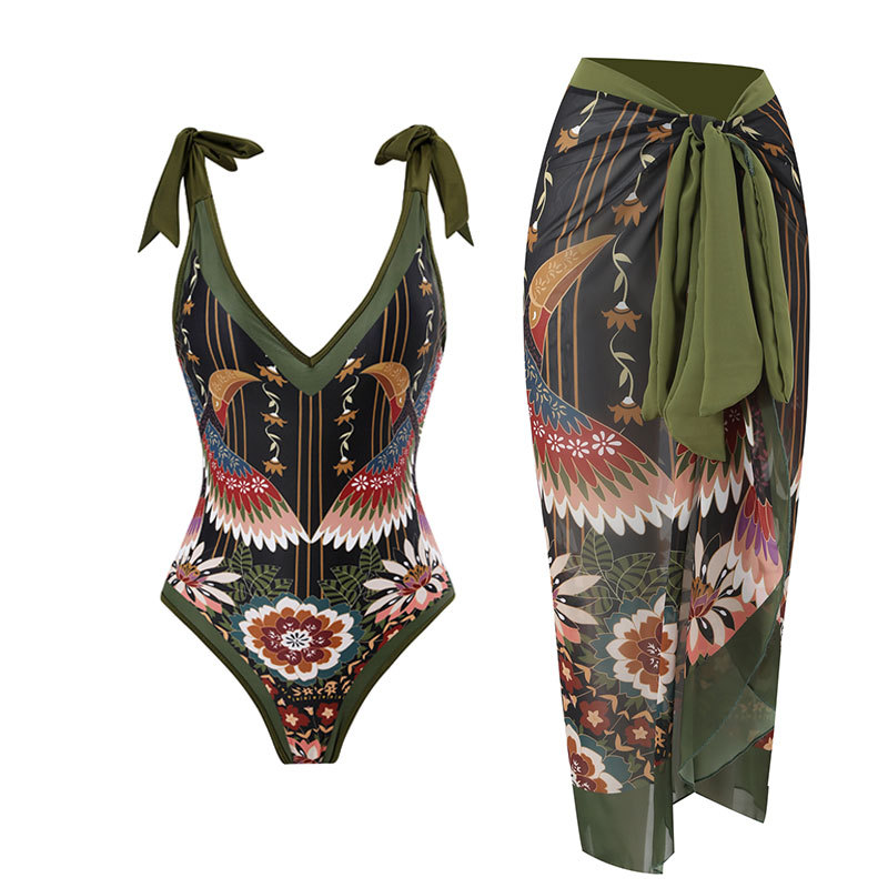 2025 유럽 및 미국 스타일 프린트 원피스 수영복 여성 인스 스타일 핫세일 스커트 비치 드레스 세트 재고 있음 인스 스타일 플로럴스토어 가기