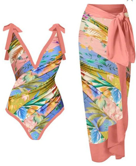 2025 유럽 및 미국 스타일 프린트 원피스 수영복 여성 인스 스타일 핫세일 스커트 비치 드레스 세트 재고 있음 인스 스타일 플로럴