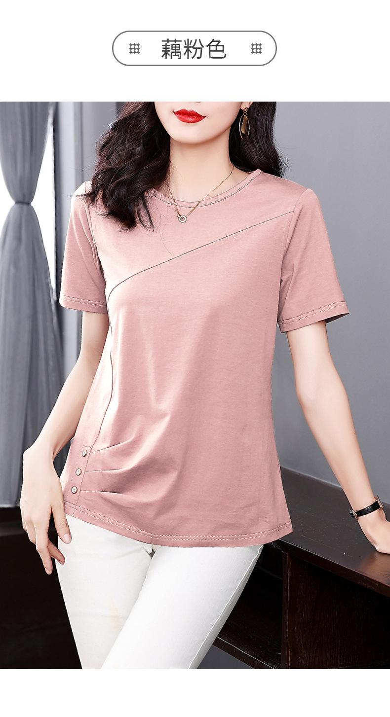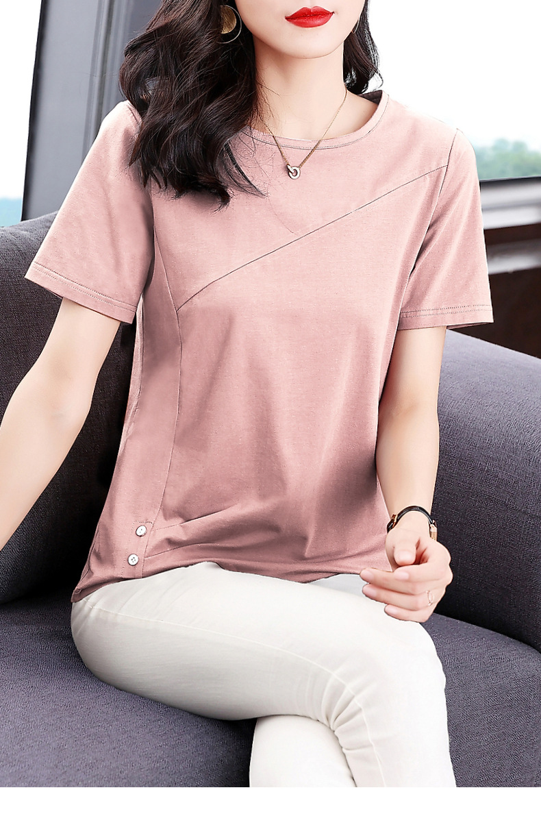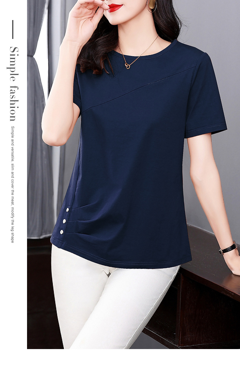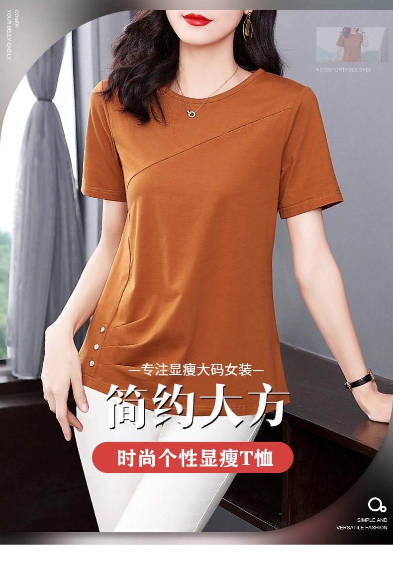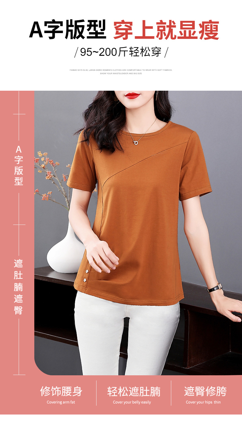 단색 반팔 티셔츠 여성용 2023 여름 새로운 중년 어머니의 플러스 사이즈 여성용 느슨한 패션 티셔츠 탑 의류스토어 가기