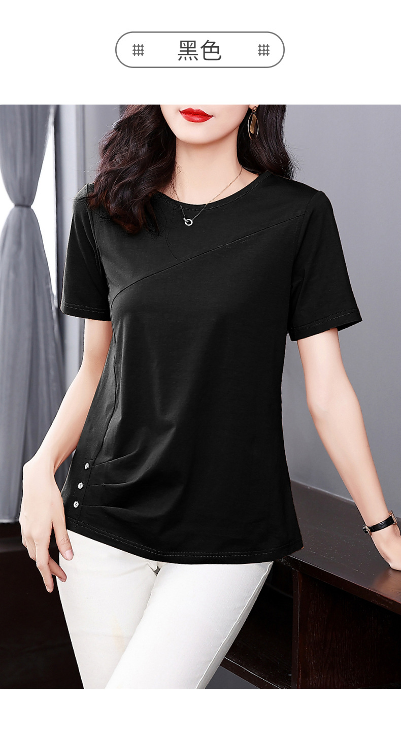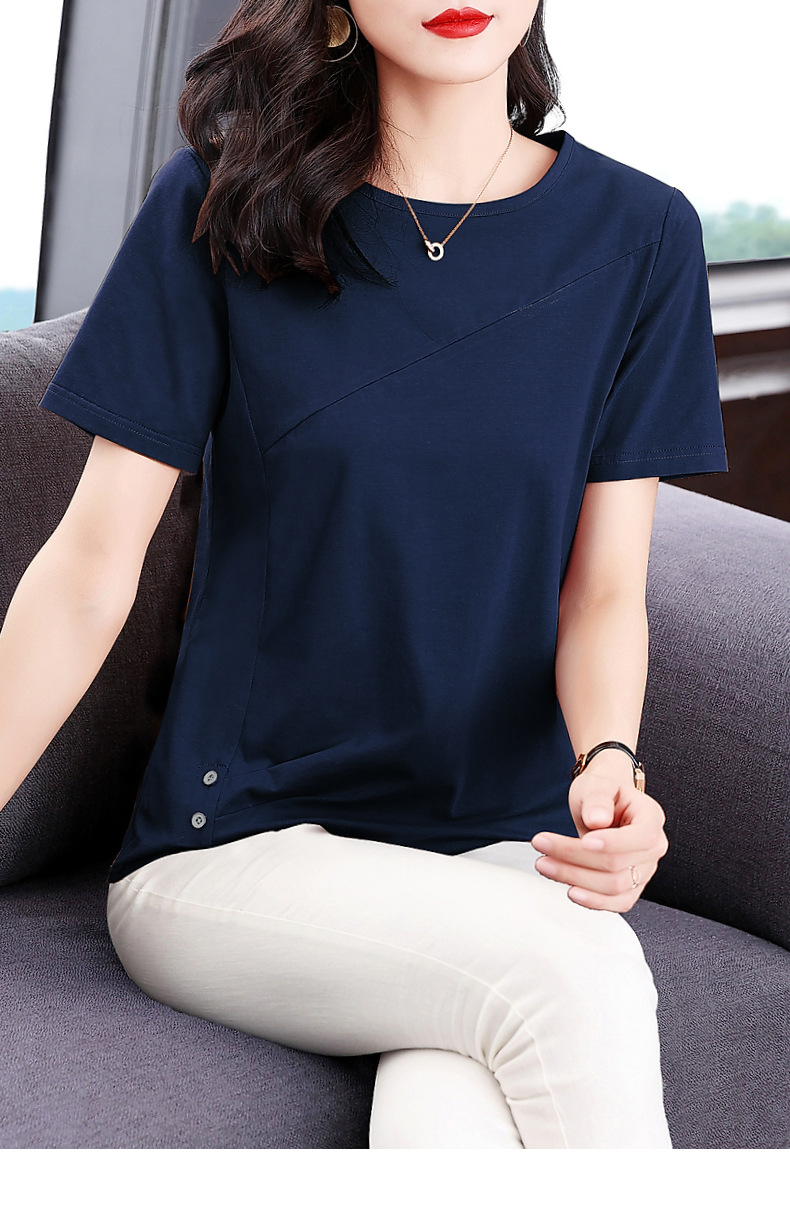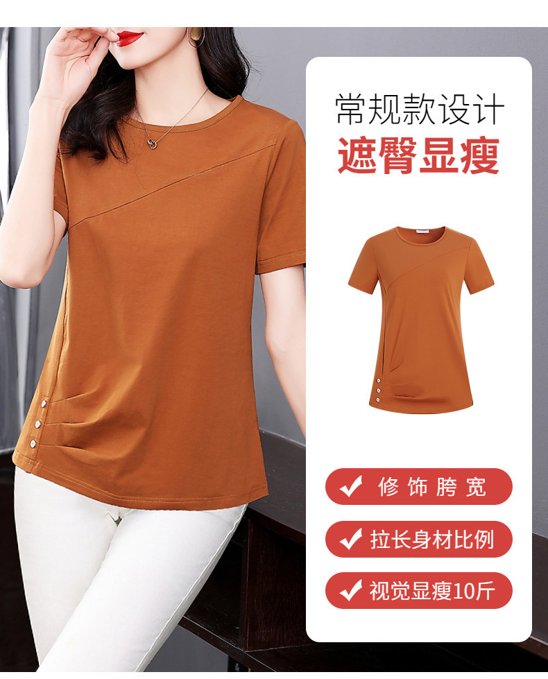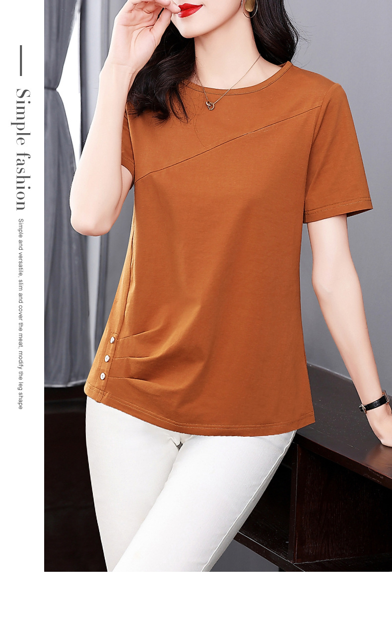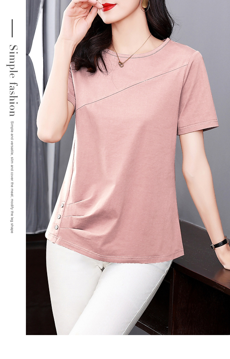 단색 반팔 티셔츠 여성용 2023 여름 새로운 중년 어머니의 플러스 사이즈 여성용 느슨한 패션 티셔츠 탑 의류스토어 가기