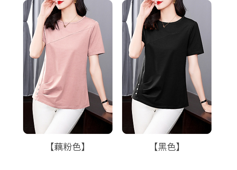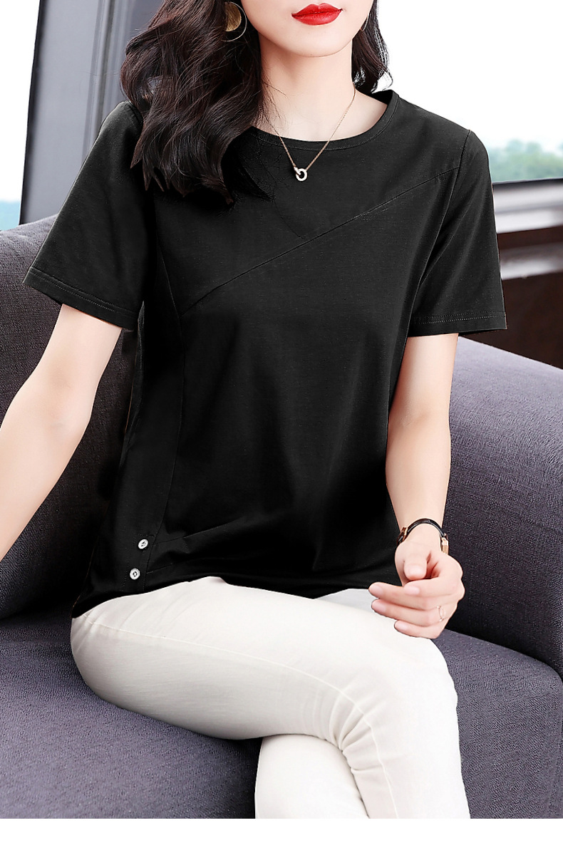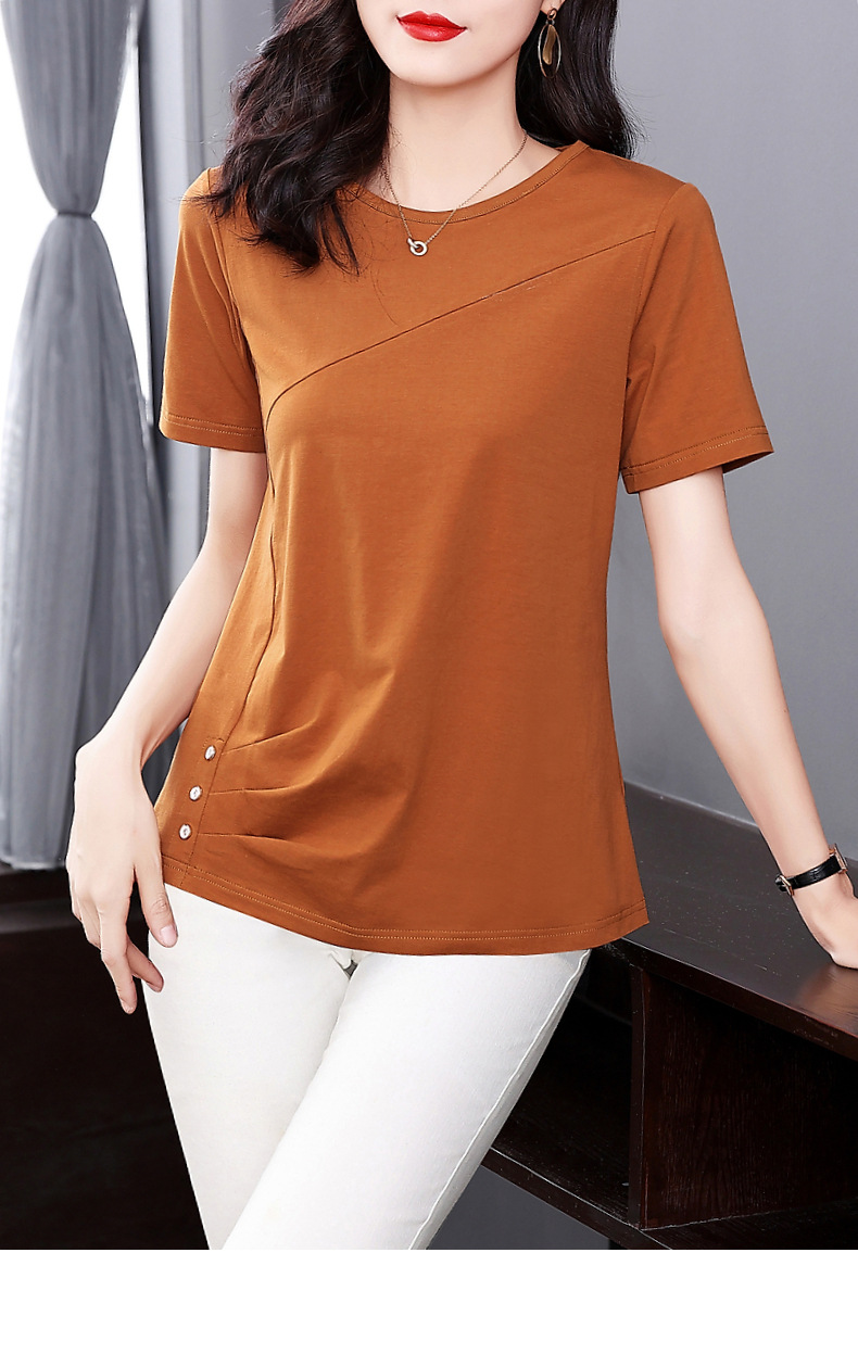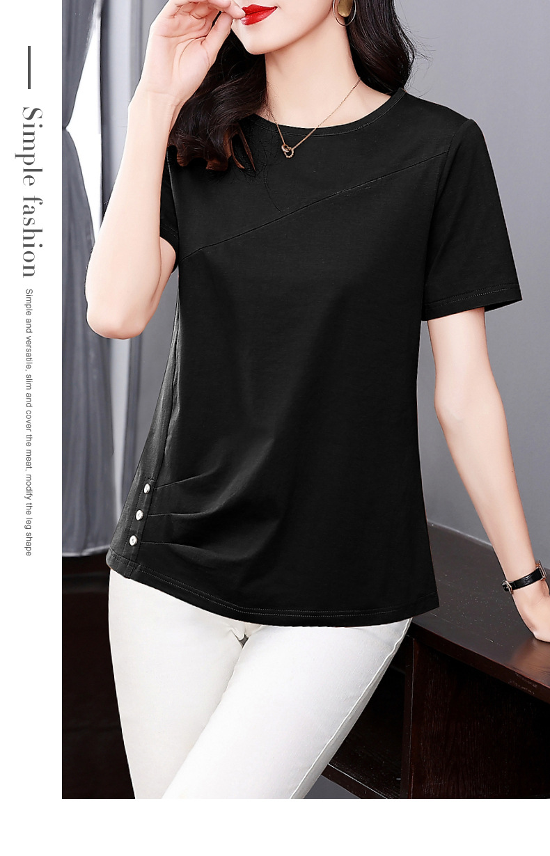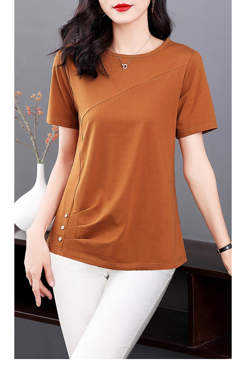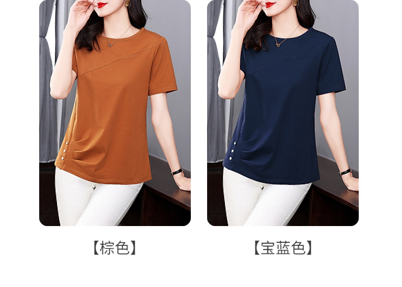 단색 반팔 티셔츠 여성용 2023 여름 새로운 중년 어머니의 플러스 사이즈 여성용 느슨한 패션 티셔츠 탑 의류스토어 가기
