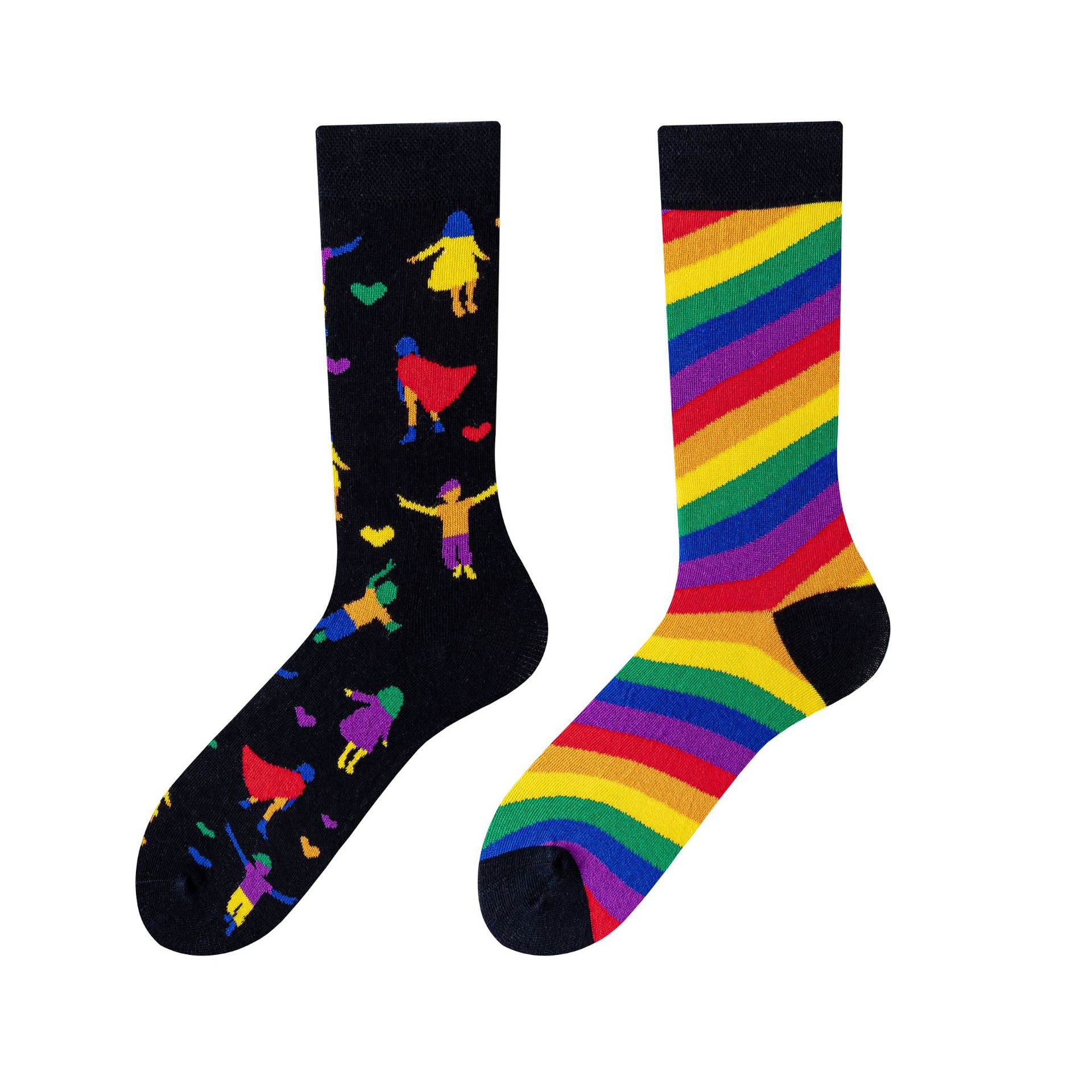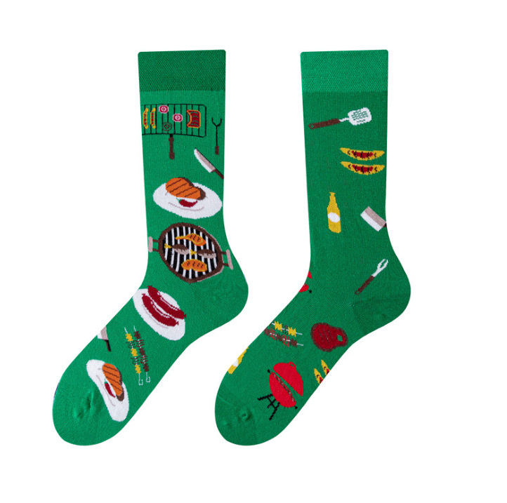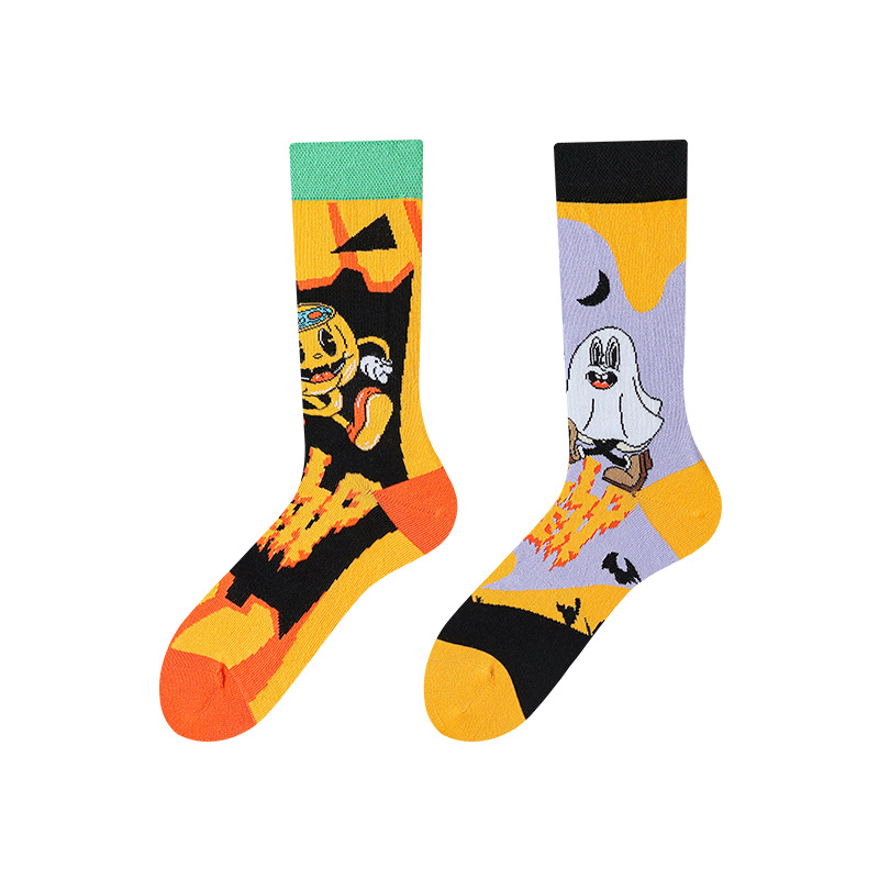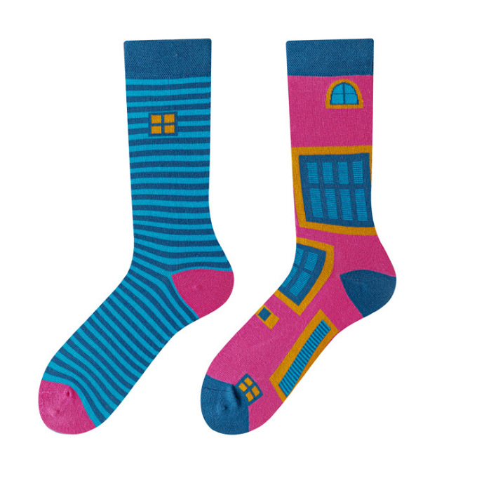 AB 양말 새로운 비대칭 커플 양말 빗질면 손 스티치 헤드 AB 양말 크리에이티브 만화 긴 튜브 면 양말스토어 가기