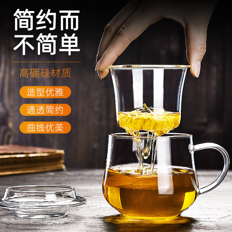 고붕규산 유리 찻잔 세트 일본식 차와 물 분리 내부 필터 유리컵 가정용 차컵 물컵스토어 가기