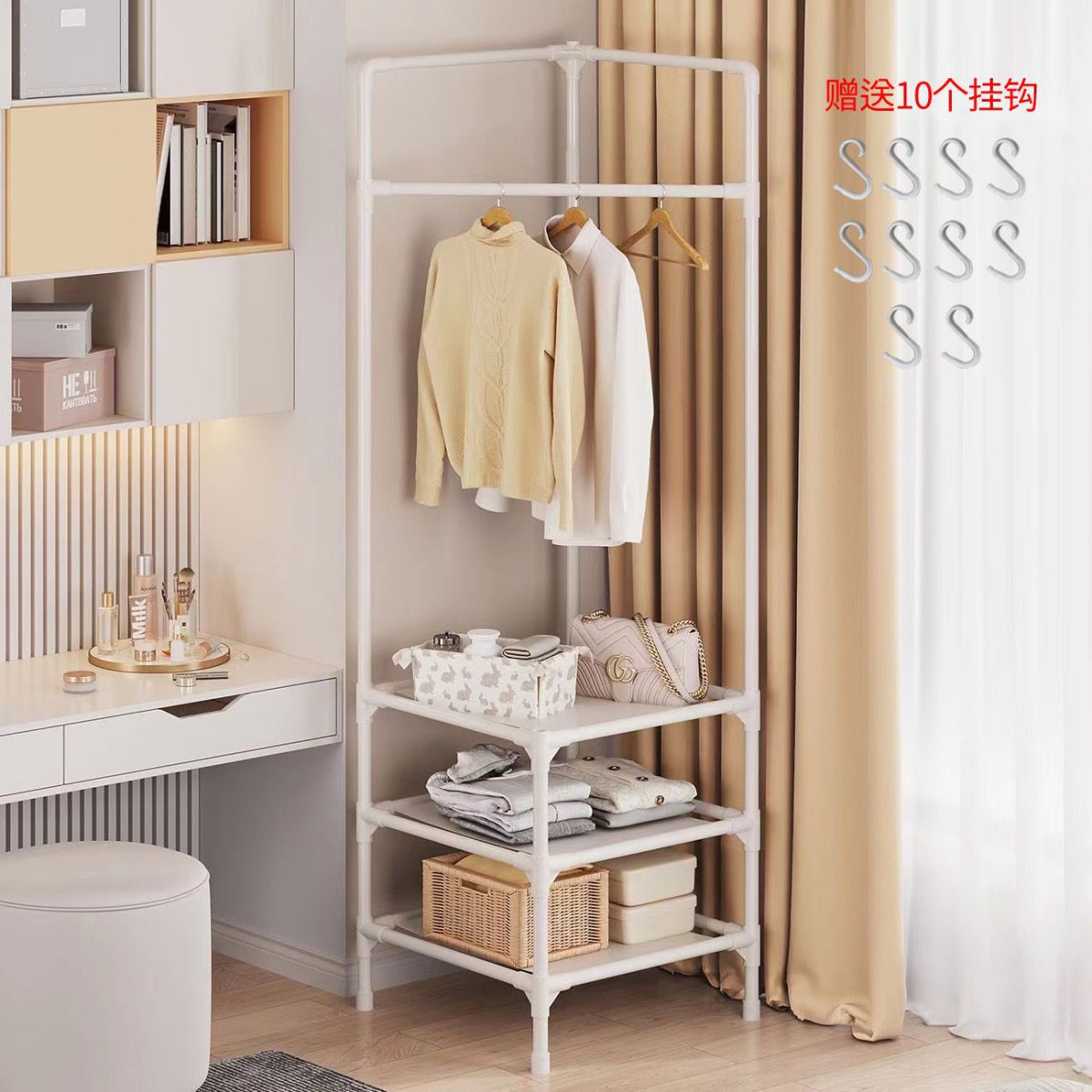 • 코너 행거 3 층 흰색 [플러스 10 후크]