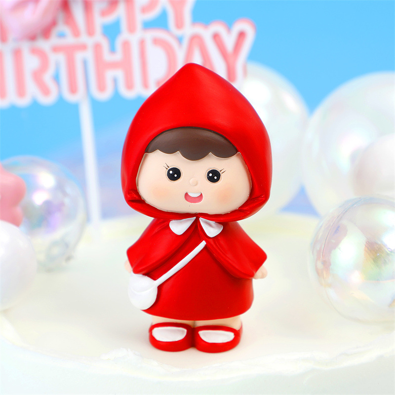 작은 빨간 승마 후드 공주 소녀 생일 베이킹 케이크 장식품 어린이 방 장식 데스크탑 수제 인형