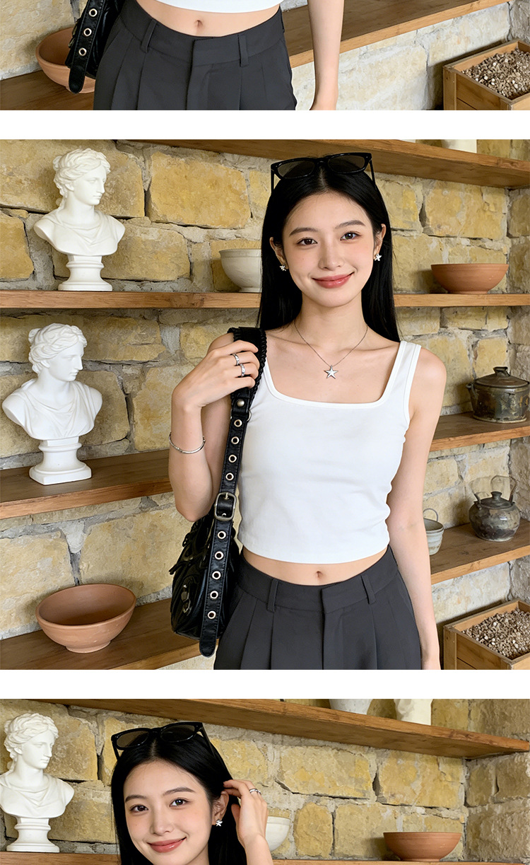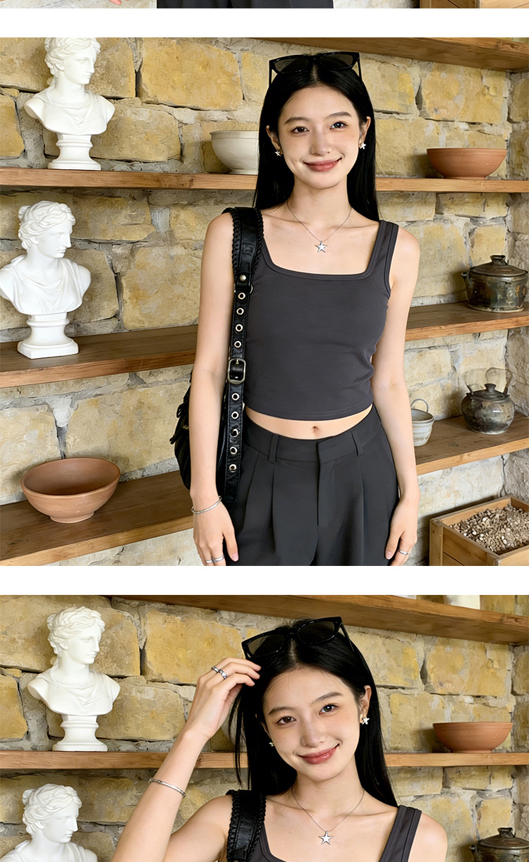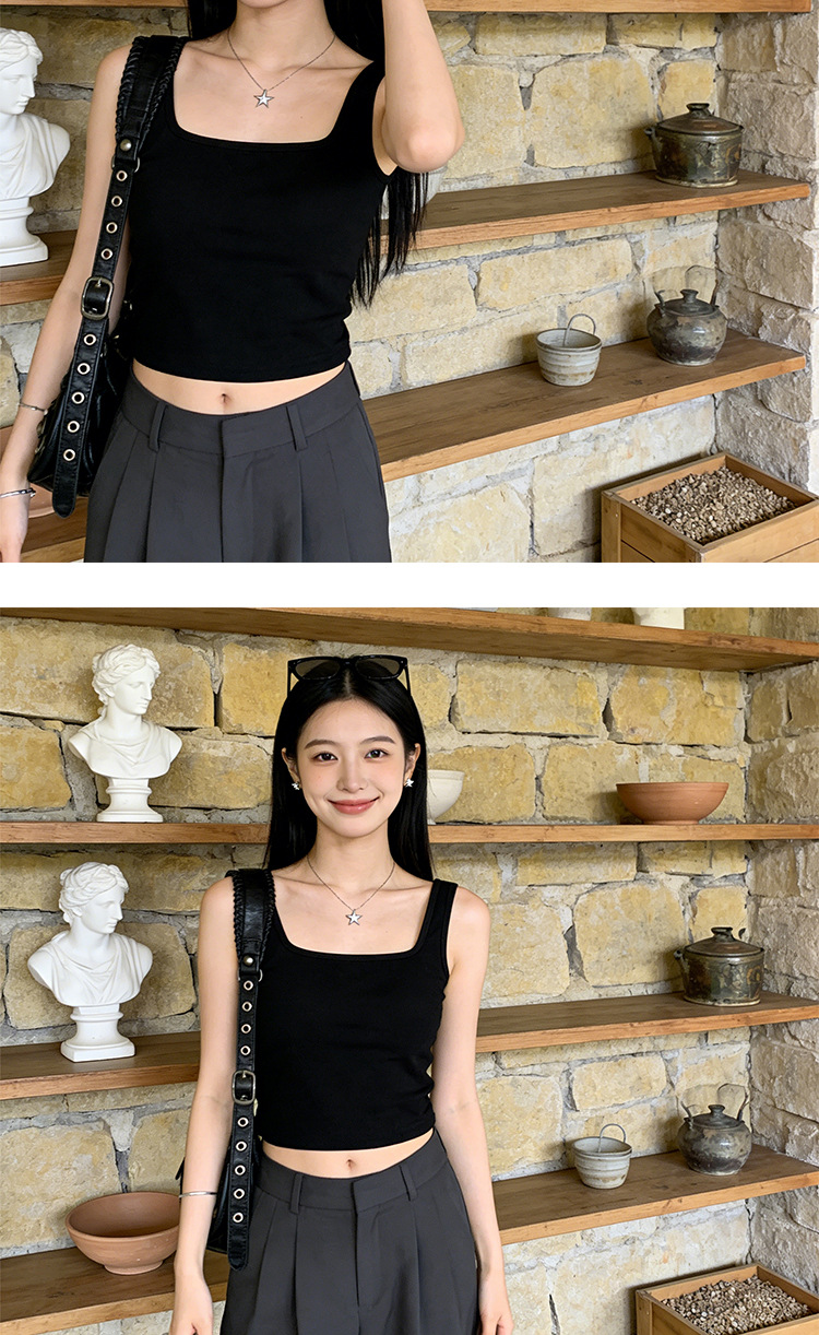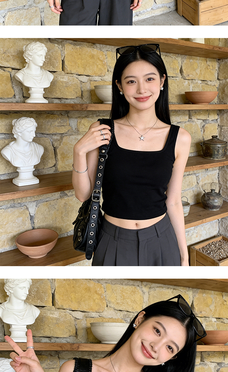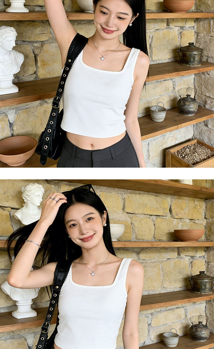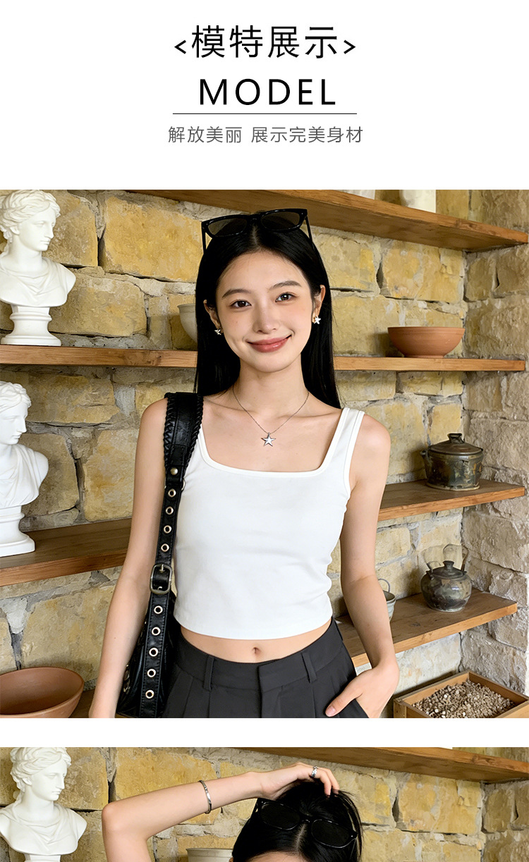 아름다운 스트랩 가슴 패드 스퀘어 칼라 모든 경기 짧은 조끼 여성용 겉옷 민소매 슬링 안티 러닝 라이트 베이스 탑