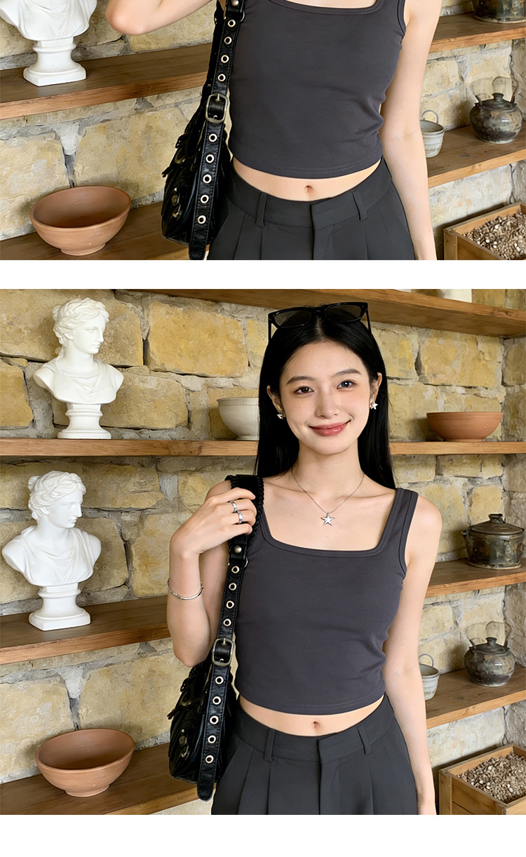 아름다운 스트랩 가슴 패드 스퀘어 칼라 모든 경기 짧은 조끼 여성용 겉옷 민소매 슬링 안티 러닝 라이트 베이스 탑스토어 가기
