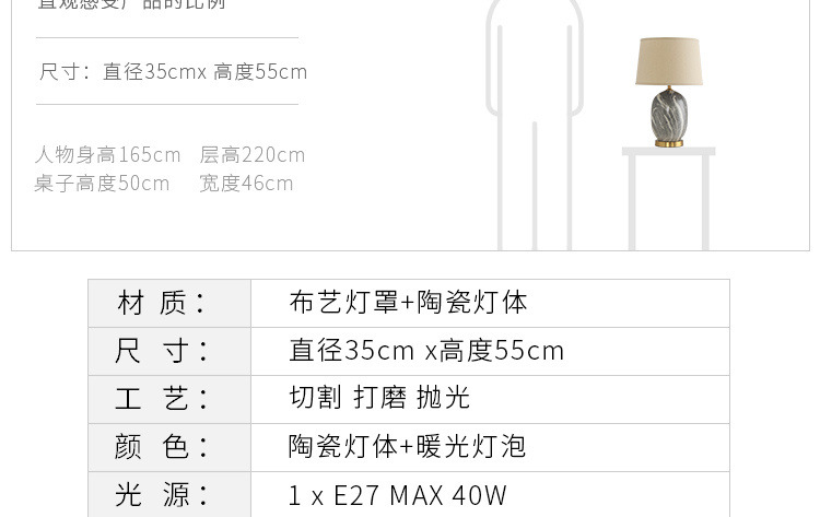 현대 간단한 테이블 램프 창조적 인 미국 세라믹 아트 맞춤형 모델 룸 침실 따뜻한 테이블 램프 홈 침대 옆 램프스토어 가기