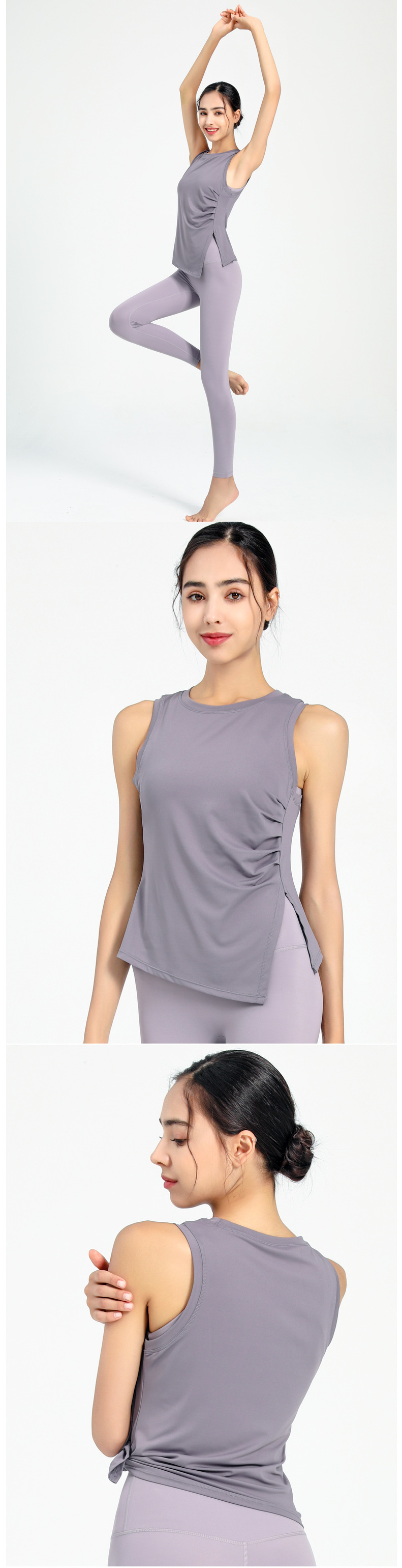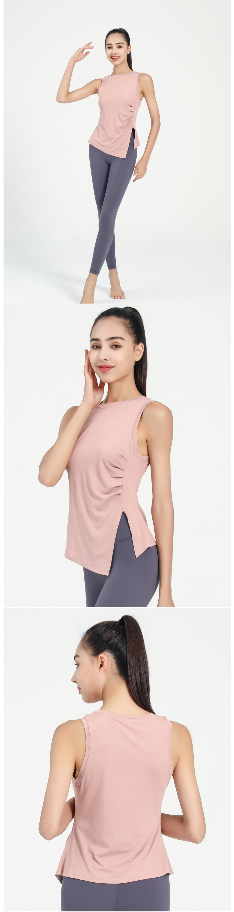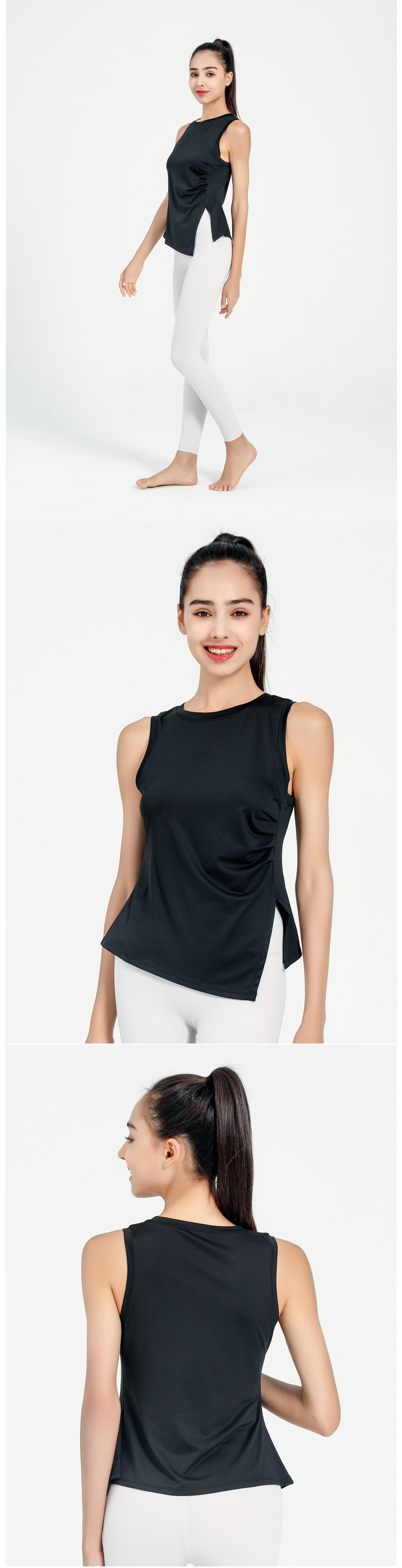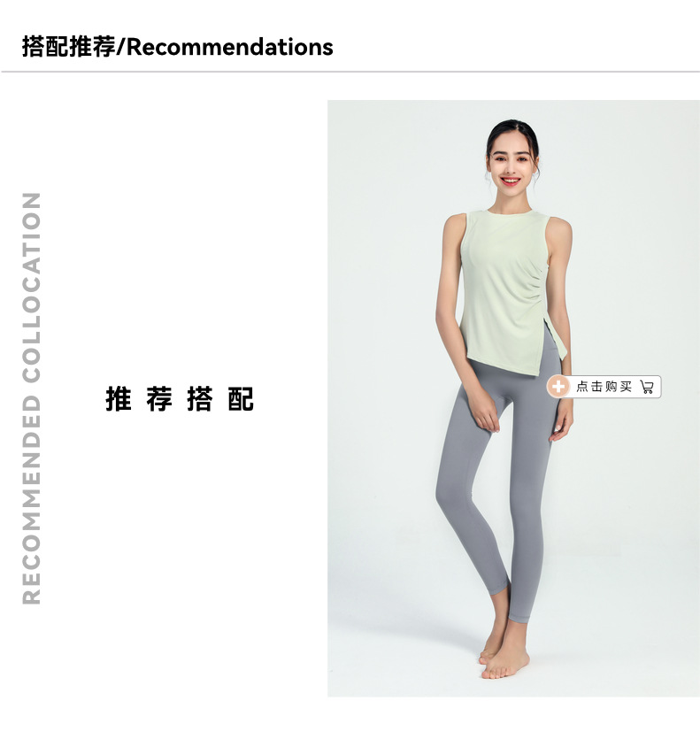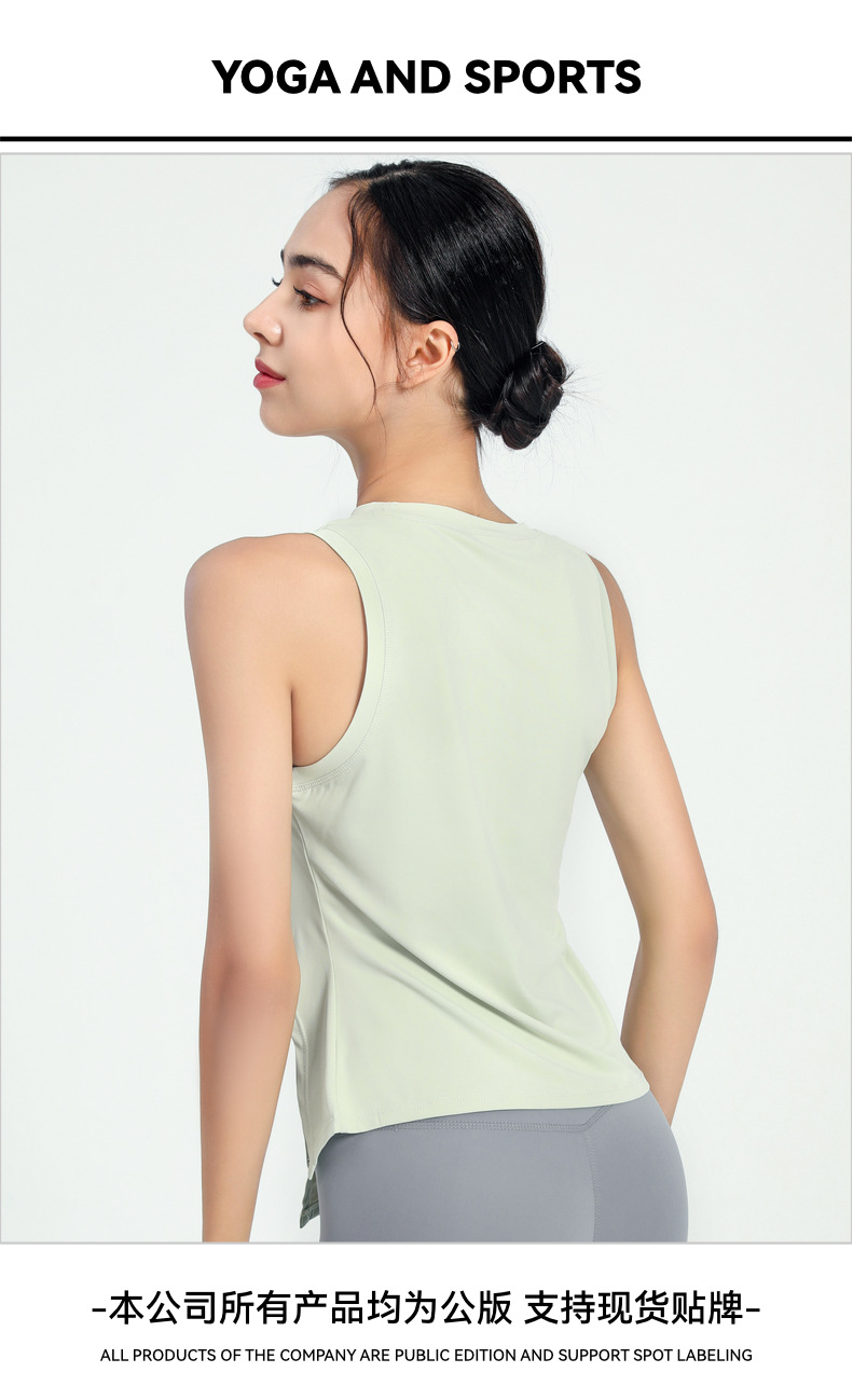 여성용 크로스보더 속건 스포츠 조끼, 유럽 및 미국 스타일 슬리브리스 요가복, 가볍고 통기성 좋은 슬릿 디자인 피트니스 의류스토어 가기