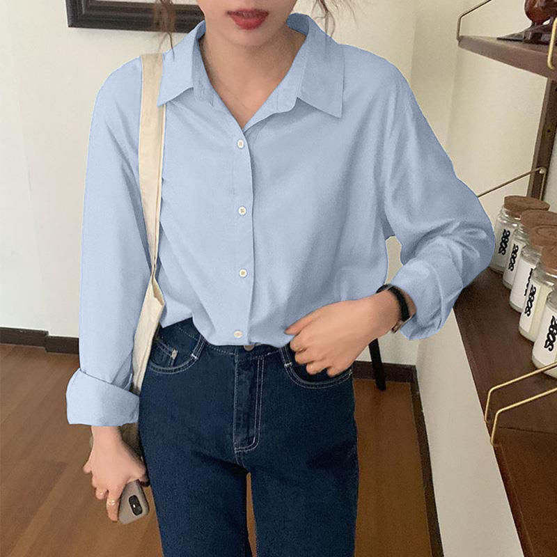 핀 소녀 크림 노란색 셔츠 라이트 옐로우 상단 부드러운 기질 드레이핑 느슨한 사탕 긴 소매 셔츠 코트스토어 가기