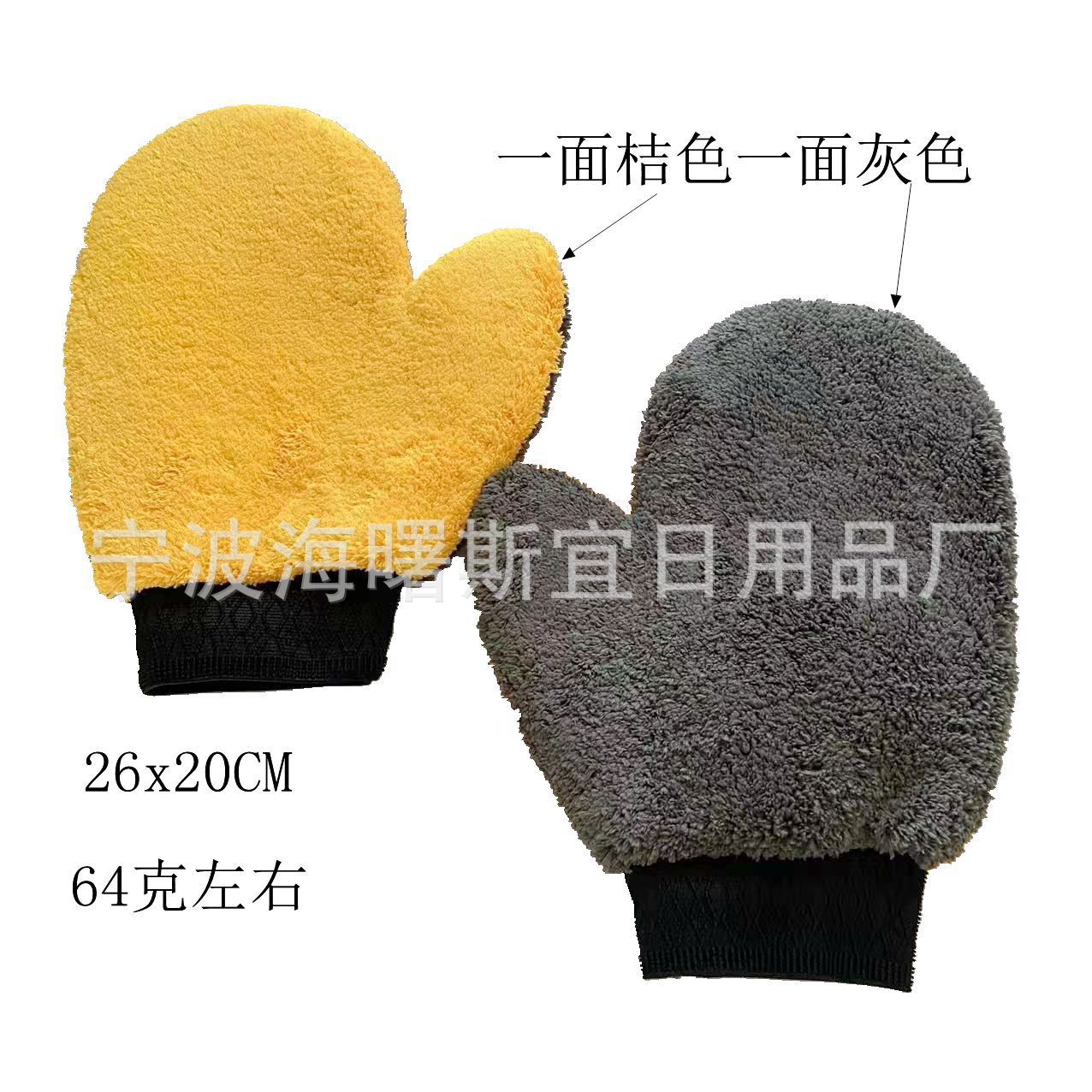 双面珊瑚绒拇指洗车手套 超细纤维毛巾擦拭手套 汽车内饰清洁手套