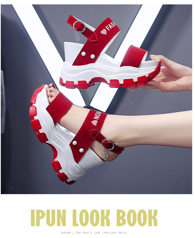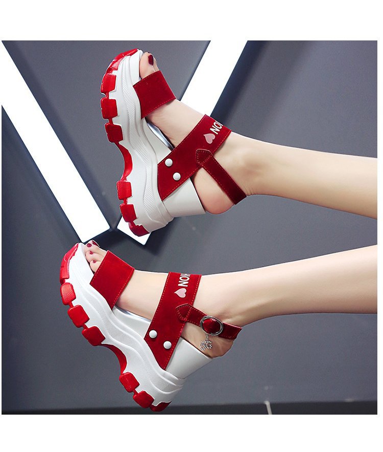 웨지 샌들 여성 요정 스타일 여름 2022 새로운 스타일 사이버 연예인 플랫폼 높은 높이의 두꺼운 바닥 힐스토어 가기