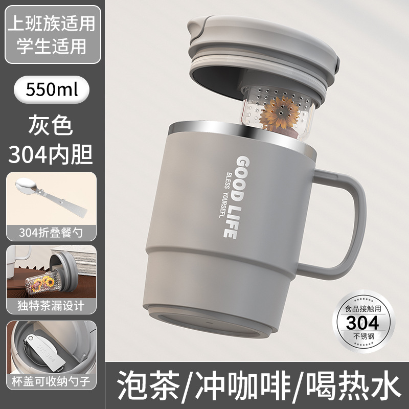 • 쿤타 550ml 차분리기컵 304스푼 [그레이]