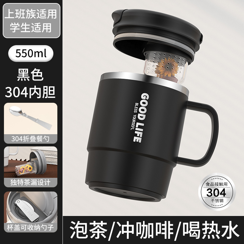 • 쿤타 550ml 차분리기컵 304스푼 [블랙]