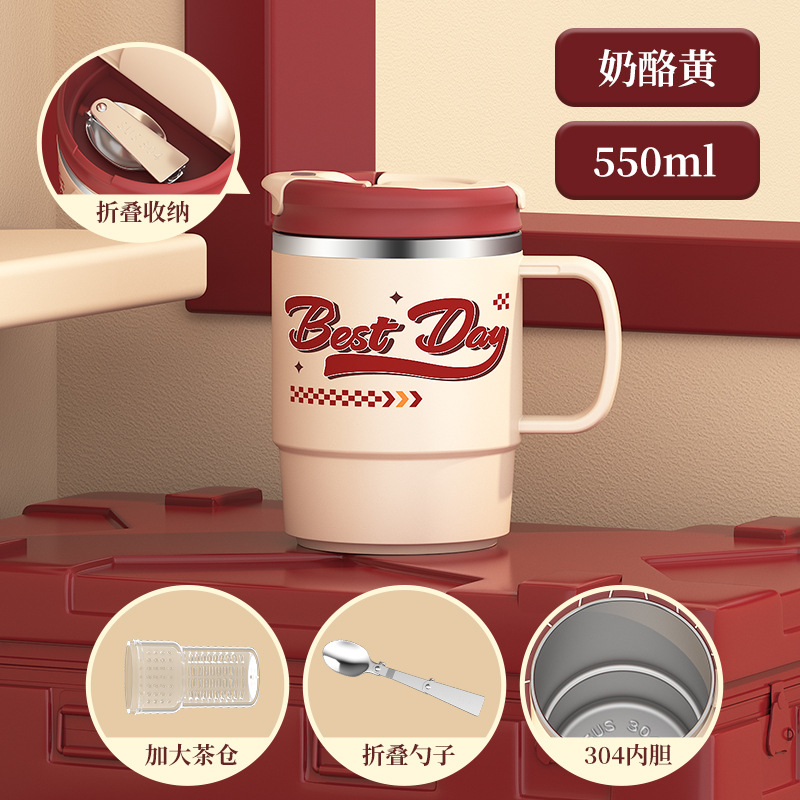 • 쿤타 550ml 차물 분리컵 304스푼 [치즈옐로]