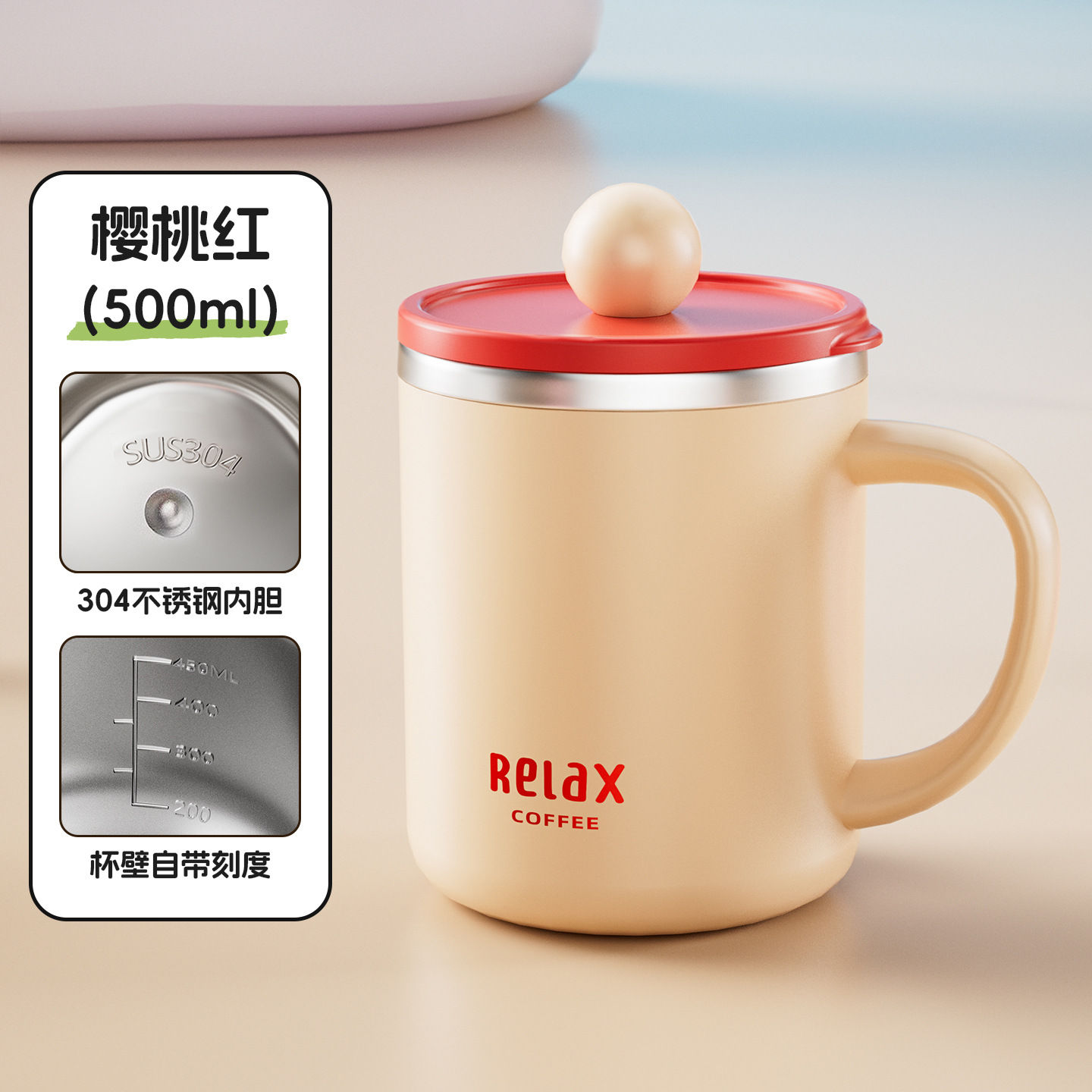 • 쿤타 550ml 차분리기컵 304스푼 [레드]