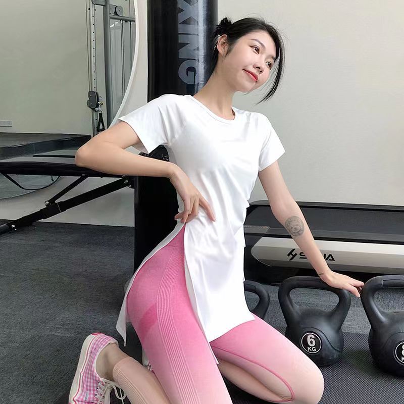 요가 의류 여성용 반팔 탑 슬리밍 속건 피트니스 의류 달리기 스포츠 반팔 졸라매는 끈 피트니스 의류 얇은 블라우스스토어 가기