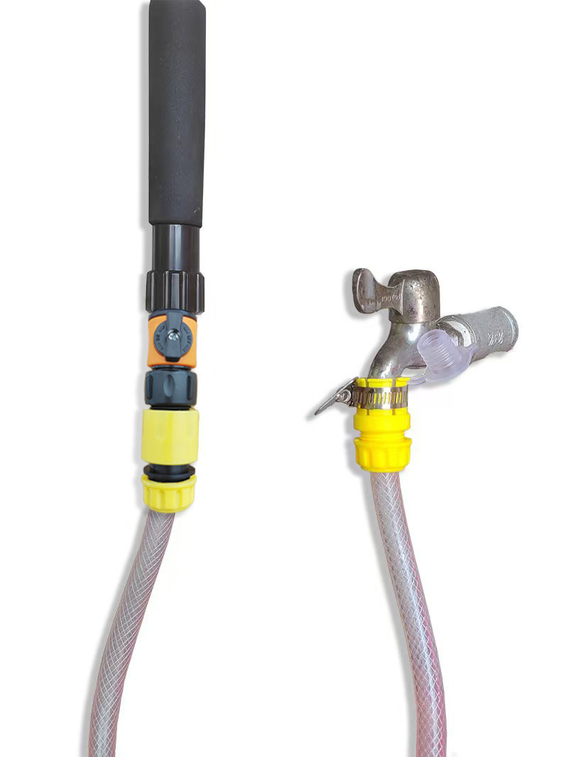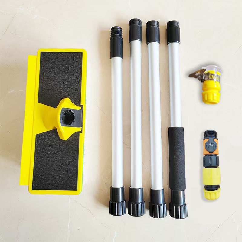 • 4 섹션 알루미늄 막대 워터 브러시 (밝은 노란색) + 워터 노즐 퀵 커넥터