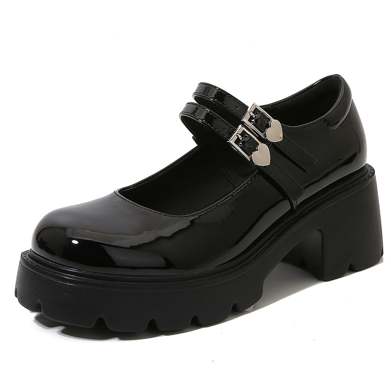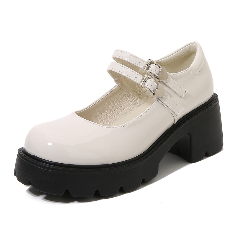 두꺼운 밑창 메리 제인 신발 여성의 2024 새로운 두꺼운 힐 싱글 레이어 신발 플랫폼 올 매치 일본 스타일 칼리지 스타일 얕은 입 가죽 신발스토어 가기