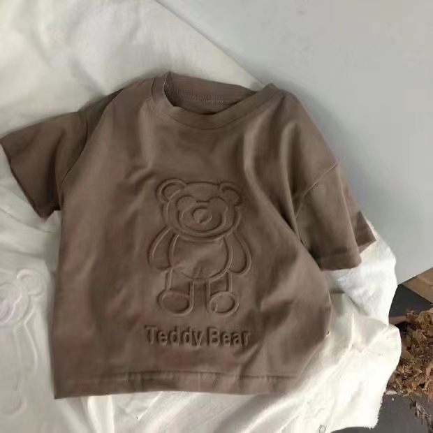 면 어린이 여름 새로운 반팔 티셔츠 소년과 소녀 귀여운 범프 베어 입체 인쇄 탑