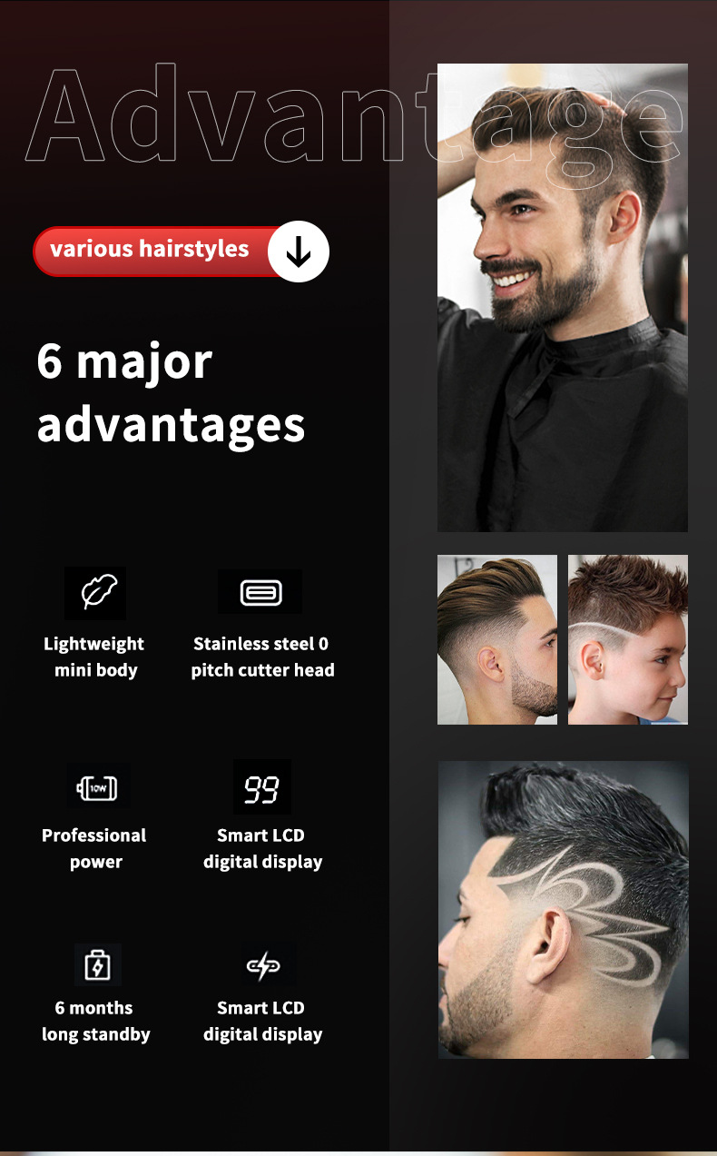 국경 간 폭발 USB 충전 헤어 클리퍼 오일 헤드 면도기 조각 전기 클리퍼 디지털 디스플레이 헤어 클리퍼 전기 클리퍼